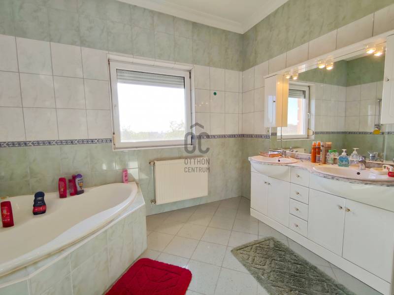 Eladó Érd Fenyves-Parkváros egyik csöndes utcájában egy 267 m2-es családi ház 1108 m2-es telekkel!Az ingatlan 2005-ben épült két szintes, duplakomfortos, tégla épület. Az alsó szinten található a konyha étkezővel, kamra, wc, szoba és egy tágas nappali, amely egész nap világos köszönhetően nagy méretű hőszigetelt ablakainak. Ezeken az ablakokon kitekintve a kertet láthatjuk, ahol minden megtalálható, hogy a család otthon is kikapcsolódhasson. Találunk itt 2 teraszt, kerti sütögetőt, filagóriát valamint a gyerekek számára kialakított játszóteret is.A felső szinten 3 szoba, társalgó, fürdő és terasz került kialakításra.Az alsó szintet van egy 2 beállós garázs is, de az udvarban elfér meg legalább 3 gépkocsi.Az épület fűtését egy gáz-cirkó kazán látja el. Arról, hogy a meleg a házban maradjon a külső hőszigetelés, valamint a hő és hangszigetelt ablakok gondoskodnak.A ház teljes egészében légkondicionált.Itt mindenki megtalálhatja a számára legszimpatikusabb szobát és még a nagymamának is jut egy szabad szoba, ha megérkezik egy hosszú hétvégére!Mivel a ház 2005-ben épült, így biztosan nem vesz zsákbamacskát, nem lesznek rejtett hibák, kellemetlen meglepetések!Kifejezetten ajánlom nagycsaládosoknak. De ha valaki szeretné felszínre hozni a benne szunnyadó megastar-t, neki segítségére lehet a rádóival felszerelt zuhanykabin! :-)Szóval ne késlekedjen mert lemarad!
