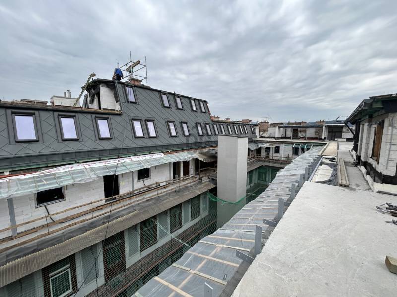 Exkluzív környezetben, műszakilag és esztétikailag a jelen elvárásainak megfelelően megtervezett és kivitelezett 119,99 m2 alapterületű, nappali-konyha-háromszoba beosztású lakás, 5,51 m2 télikerttel eladó.A lakás Petschacher Gusztáv tervei alapján készült épület 5.emeletén helyezkedik el, egyszintes, ablakai utcára néznek.Igazi ritkaságnak számító lakás, mely a Jókai tér irányába néző újjáépült toronyban kerül kialakításra. Az előtérből közelíthető meg a hall, ahonnan nyílik a két szoba, a konyha-étkező és az íves nappali. két vizesblokk is kialakításra kerül, egyik fürdőkáddal. A konyha-étkezőből nyílik egy kisebb szoba, mely dolgozószobaként vagy vendégszobaként is funkcionálhat. A télikert megközelíthető a kisebb hálószobából és az étkezőből is.A lakás hűtéséről és fűtéséről oldalfali fan-coil rendszer gondoskodik. Riasztórendszer kiépítésre kerül. A hidegburkolatok (konyha, fürdőszoba, közlekedők) alatt padlófűtés kerül elhelyezésre. A lakások hűtését és fűtését H tarifás hőszivattyús rendszer biztosítja, így a lakások energiaellátásának költsége nagyon kedvező.A lakásokba a műszaki tartalomban szereplő konyhabútorok és gépek kerülnek beépítésre.A burkolatok és a konyhabútor színe tetszés szerint választható, a kijelölt opciók közül. Megfelelő időben történt megrendelői módosításokra lehetőség van.Projekt bemutatásaA lakások az UNESCO világörökség részét képező műemlék védettség alatt álló épület tejesen új építésű tetőterében helyezkednek el.A lakások legkésőbb 2023 szeptemberétől beköltözhetőek.A lakások mind saját lakásnak, mind értékálló befektetésnek is kiválóak. A már kivitelezés alatt álló 15 lakásos projekt keretében eladásra kínált változatos méretű egyszintes, belső kétszintes, illetve háromszintes luxus lakások nagyméretű tetőterasszal, télikerttel a legmagasabb igényeket kielégítő kivitelben készülnek.ELHELYEZKEDÉS:A lakások elhelyezkedése minden szempontból kedvező, kiváló közlekedési kapcsolatokkal. Közel a Pesti Broadway, pár perc sétára van a Zeneakadémia, az Operaház, az Operettszínház, a világörökség részét képező Andrássy út, a Liszt Ferenc tér, továbbá a Király utca, a Gozsdu udvar, amely a Budapest belvárosának egyik legdinamikusabban fejlődő központja, egy találkozási pont, ami összeköti a szórakozást, a gasztronómiát és a kultúrát. A szórakozó negyed a hét minden napján egyedülállóan izgalmas programokkal várja vendégeit.INGATLANOK:Exkluzív környezetben, műszakilag és esztétikailag a jelen elvárásainak megfelelően megtervezett és kivételezett 64-154 nm alapterületű, teraszos lakások eladók.Az új lakások a luxus minden elemével rendelkeznek, modern otthont teremtve a lakóknak, míg a világörökség részét képező, 1895-96-ban Petschacher Gusztáv tervei alapján épült eklektikus épület őrzi a régi hangulatot, amely az építés során felújított homlokzattal hangsúlyossá válik. Tradicionális környezetben teremt - a luxus minden elemével rendelkező - modern otthonokat.ÜTEMEZÉS:Az építkezés a januárban meghatározott ütemnek megfelelően, késedelem nélkül halad:- a tetőszerkezetet tartó acél keretállások elkészültek, továbbá a műemléki bádog tető fa fogadó részének a felrakása befejeződött, melyet követően az épület teljes lefedése megtörtént.- az udvarra kerülő 8 személyes új Kone lift tartószerkezete kész és 2023 márciusára a lift üzembe helyezése is megtörténik.- a homlokzat felújítás elindult.- a lakások falainak építése, az elektromos és gépészeti munkák is elindultak és megfelelő ütemben folynak.MŰSZAKI TARTALOM:PADLÓBURKOLAT- Beltér -A belső lépcső, kerámia burkolat készül, a megajánlott alap burkolattal. Opcionálisan lehet választani faburkolatot mely megegyezik a svédpadló anyagával. A belső vizes helyiségben, a belső lépcsőkön és a konyhákban, valamint a nappali terében elhelyezkedő konyhai területeken matt kerámia készül.A fürdőszoba egyik falára választható opciós burkolat. A nappali terekben és a hálószobákban svédpadló kerül lefektetésre.- Kültér - A teraszok, és a függőfolyosók csúszásmentes fagyálló kerámia ill. greslap burkolatúak, teljes felületű, üregmentes, flexibilis és fagyálló ragasztással.FALBURKOLAT- BeltérA vizes helyiségben ragasztott kerámia vagy greslap falburkolat készül álmennyezet alsó síkjáig.A pozitív éleket sarokprofillal lesznek kialakítva. A konyhákban a falon csak a konyhabútor és a felső szekrény között készül fali kerámia burkolat.Belső festések min.2 rtg. diszperziós fehér falfesték falakon, mennyezeten- Kültér -A teraszoknál külső Trespa falemezes burkolat kerül a határoló falakra, tölgy színben.NYÍLÁSZÁRÓK- Beltér -Három oldalon falcolt, vázszerkezetű Mantu Echt ajtók kerülnek furnérozott ajtólapokkal, eloxált alumínium kilinccsel és körrozettával.- Kültér - A lakásokhoz tartozó külső nyílászárók rendszere: Gealan S9000 ötkamrás, 3 rétegű, kiváló hang és hőszigetelést biztosító rendszer, kívül barna, belül fehér színű, távirányítóval működő külső redőnnyel. A tetőteraszok tolóajtó szerkezetűek.A tetősíkba beépített ablakok Fakro típusúak, elektromos mozgatású redőnnyel, belül fehér, kívül szürke. Ahol szükséges, betörésbiztos balesetvédelmi biztonsági fóliával ellátott üvegezéssel készül.Az öt ponton záródó, acéltokos lakásbejárati ajtók a hatályos előírásoknak megfelelő biztonsági szinttel, a vonatkozó klímaosztálynak megfelelően készülnek, barna színben.KONYHABÚTORA konyhában beépített süllyesztett led munkafénnyel készül, az ajtók
