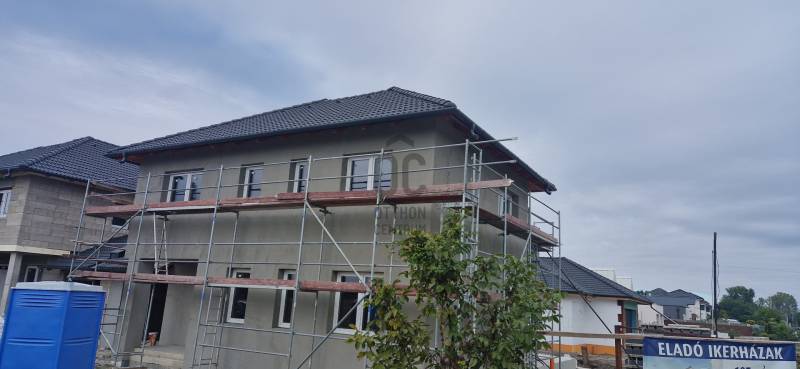 A Tégláskert újépítésű házas részén, csendes utcában eladó egy szerkezetkész, 187 m2-es, nappali-amerikai konyha +5 szobás ikerház!Debrecenben a Tégláskert új házakkal beépült részén, a Gázvezeték utcai forgalomtól távol, eladó egy nettó 187 m2-es, nappali-amerikai konyha + 5 szobás intim ikerház, ahol csak a garázsok érnek össze, de dupla falazattal és köztük hanggátló szigeteléssel, közel 500 m2 telekrésszel.A kivitelezés jelenleg szerkezetkész állapotban van, nyílászárók beépítésre kerültek és a tető is elkészült. A végleges belső kialakítás jelenleg még változtatható, igény szerinti helyiséglista megvalósítható. Alapból két fürdőszoba lett tervezve és három WC, de a nappali + 5 szobához az emeleten kialakítható egy harmadik fürdőszoba is, épített zuhanyzóval.Az ár kulcsrakész állapotot takar, amelybe 5 kW napelemes rendszer, 12 kW hőszivattyús rendszer, térkőburkolatok és elektromos autó töltő állomás kiépítése is beletartozik. Részletes műszaki tartalommal és megtekintési időponttal kapcsolatban várjuk hívását a hét minden napján! Az ingatlanból az adásvételi szerződés megkötését követően 4 hónap múlva otthona lehet!