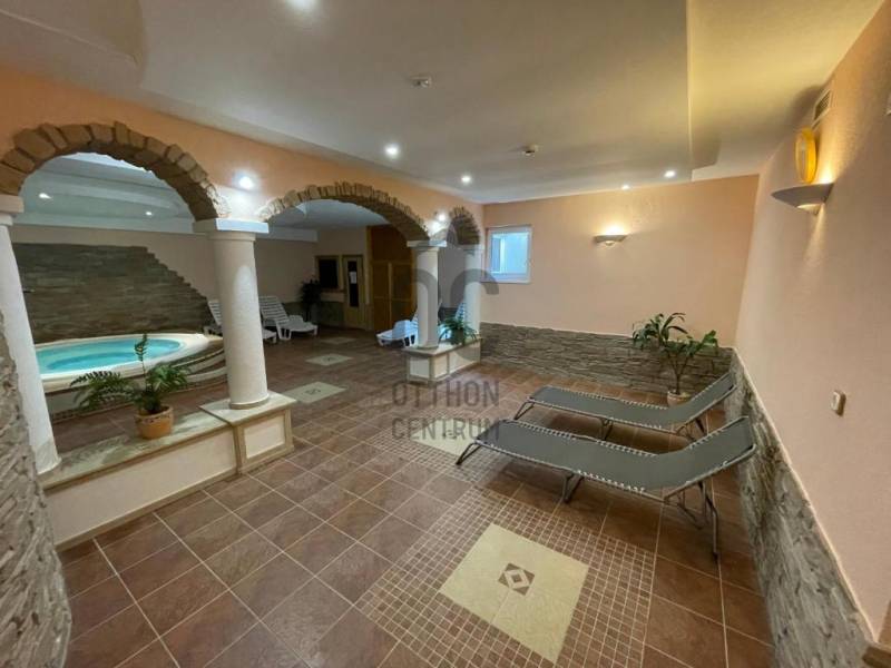 Kiváló állapotú, 8 lakásos apartmanház várja új tulajdonosát Hévíz szívében!A 2003-ban épült ingatlan egy 823 m2-es telken helyezkedik el, a 3 szintes ház 549 m2 alapterületű, így alkalmas akár szállodai, akár lakóingatlan céljára is. A lakásban minden szoba külön fürdőszobával ellátott, ami nagy előnyt jelent a vendégeknek vagy a nagyobb családoknak. Az ingatlan kiváló állapotban van, fűtése gáz (cirkó), hűtése pedig klímával megoldott. Az ingatlan panorámája csodálatos, a környék csendes és biztonságos.A házban 8 vendégapartman található - 7 azonos típusú nagy kétszobás apartman (2-4 fő részére: hálószoba + nappali konyhával és erkély/terasz) és egy 1 studio lakás (2 fő részére). Minden apartman felszerelt bútorokkal, konyhai eszközökkel, klímával, mechanikus redőnnyel és erkély tartozik a lakásokhoz.A földszinten található a wellness részleg (jacuzzi, szauna, relaxációs szoba), masszázs szoba, konferenciaterem (konyhai pulttal és reggeli lebonyolítási lehetőséggel), 2 vendég WC, 4 tároló helyiség (raktár), gépészeti helyiség és kazánház. Az 1. emeleten egy recepció, egy studio-szoba és 3 kétszobás apartman található.A 2. emeleten 4 kétszobás lakás található.Az udvaron szabadtéri medence található napozóágyakkal és 5 gépkocsibeálló.A medence méretei: 6,3 méter * 4,6 méter (mélység 60 cm és 135 cm).Fűtés és meleg víz ellátás Vaillant gázkazánnal történik, Vaillant ecoTEC plus VU INT 656/5-5 (H-INT II) Fali kondenzációs fűtő gázkazán Névleges teljesítmény: 59.00 kWA ház teljes fűtési és vízvezetékrendszerét felújították 2023-ban.A vételár tartalmazza a teljes berendezést! A ház mindennel felszerelt, ami az apartmanok további bérbeadásához szükséges. Az ingatlan azonnal bérbeadható, visszatérő vendégkörrel rendelkezik az apartman.Hévíz a világhírű termálvizeiről ismert, így a környék turisztikai szempontból is vonzó, sok lehetőséget kínál a pihenésre, kikapcsolódásra. A lakás környékén találhatóak éttermek, boltok és különböző szolgáltatások.Ha felkeltette érdeklődését az ingatlan, kérem, forduljon hozzám bizalommal, és szívesen válaszolok minden kérdésére.Irodánk teljes körű díjmentes szolgáltatást nyújt kereső ügyfeleinknek.Szakszerű tanácsadással, ingyenes hitel és CSOK ügyintézéssel, energetikai tanúsítvány elkészítésével és kedvező díjszabású ügyvéddel nyújtunk segítséget!
