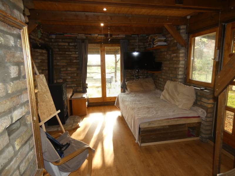 Csend, nyugalom és a természet közelségeSándorfalva zártkerti részén, 1000m2-es telken levő, 2016-ban befejezett, 2 szobás,tetőtér beépítéssel 50m2-es bruttó területű (nettó kb.: 40m2), klímás, fedett teraszos, hangulatos ház eladó.A közművek közül a villannyal rendelkezik a ház, a vizet fúrt kútról hydrofor biztosítja, fűtés fa tüzelésű kandallóval lehetséges. A ház előtt tetővel rendelkező autó beálló van. A telek 10mX 100m, illetve lehetőség van bővítésre a szomszéd telek megvásárlásával, ami 1000m2 (10mX100m). A kertben gyümölcsfák és szőlő telepítve. A ház falazata: „mezei” tégla ezen egy 12cm-es Isolyth hőszigetelés és kívül pedig lambéria burkolat díszít és véd.Tető: zsindely fedéssel 12cm-es Isolyth hőszigeteléssel.Födém: fa gerendákkalA tetőtér leválasztásával még egy szoba kialakítható, így akár gyermekes családoknak is megfelelő lehet.A házat ajánlom a természetes anyagok kedvelőinek, mert bárhova nézünk a fa és a tégla uralja a környezetünket, a házba lépve úgy érezzük magunkat, mintha még mindig a természetben lennénk. Ezt a harmóniát a konyhabútor és a nyílászárók sem törik meg holmi műanyaggal.Az ingatlan csak készpénzzel vásárolható meg, kifüggesztés szükséges, értékegyeztetéssel lakásra cserélhető. Várom megtisztelő hívását.