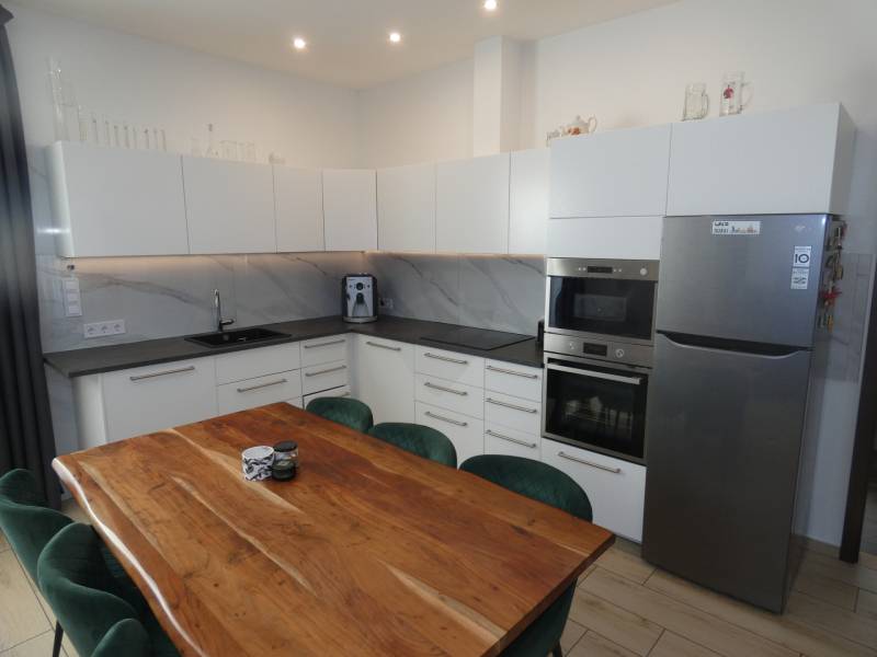 Szeged-Újszeged városrészben, Lőtér lakóparkban 2022. februárban átadott, 625m2-es telken levő, földszintes, nettó 133m2 alapterületű, amerikai konyhás nappali+4 szobás, dupla komfortos, dupla garázzsal rendelkező könnyűszerkezetes, napelemes, 0 rezsijű, akár két önálló lakássá alakítható családi ház eladó.Az ingatlan főbb jellemzői:- Minőségi anyagok felhasználása- tető hagyományos ácsszerkezet (nem szeglemezes)- Bramac cserép- Falazat hőszigetelése 27cm (falban 12cm közetgyapot, homlokzati 15cm polisztirolhab)- födém 40 cm hőszigeteléssel- Schüco műanyag ablakok 3 rétegű üvegezéssel- éves szinten 0 Ft a gáz és áram költség- 20 éve működő cég kivitelezése (300+ felépített ház)- NMÉ tanúsítvány- elektromos kazán (Bosch)- minden helyiségben termosztát- Fronius inverter (osztrák)- Q Cells napelemrendszer 15kW (német)- öntanuló hőszivattyús Ariston Hybrid villanybojler- padlófűtés vizes rendszerű (gázkazánra vagy hőszivattyúra is köthető)- 3X40 A villamos hálózat (elektromos autó is tölthető)- 3 inverteres klíma (2db 2,5kw, 1db 3,5kw)- Geberit beépített WC, Grohe csaptelepek- HT. helyiség melletti háló hangszigetelt- videó kaputelefon- elektromos kapu és ajtó- internet és TV csatlakozás minden szobában- 15kW-os szaldós napelem- akadálymentesített- redőny előkészítés- sarok telek (2 utcáról bejárat)- 250m2 térkő burkolat- 13 autóval parkolási lehetőség- padló fűtésű dupla garázs Hörmann elektromos kapuval (36m2)- eső vízelvezető árokba elvezetve- terasznak is van fűthető része télikertnek előkészítve- két generációnak is alkalmas (garázs lakrésszé alakításával)Ragadja meg az alkalmat! Jól átgondolt elrendezésű, magas műszaki tartalommal, abszolút modern, megbízható kivitelezővel épített, nagyon alacsony fenntartású (csak víz-és csatornadíj van), újszerű ingatlan tulajdonosa lehet, amely még szaldós elszámolású. Várom megtisztelő hívását.