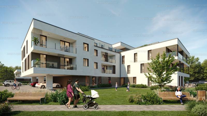 Győrben, Révfalu és Kisbácsa városrész határán, egy újonnan kialakított lakóparkban kerül felépítésre.A Lakópark megközelítése szintén újonnan kialakított úthálózatról megközelíthető a terület közműhálózattal, gyalogos járdával, vendégparkolóval, térvilágítással rendelkezik .A négy épülettömbből álló lakópark „A”-„B”-„C”-„D” épületében 20-20 lakás és 4-4 üzlet épül.A lakópark építése 2024 nyarán kezdődött az „A” épület lakásai már 2025 III.negyedévében, B épület lakásai 2026. I. negyedévében költözhetőek.A terület elegáns nem zsúfolt, kellő zöldterülettel rendelkezik, így kedvező elhelyezkedése miatt a város egyik legnépszerűbb lakóövezetévé válik a jövőben.Leendő ügyfeleink egészen a Nappali+1 szobás lakásoktól a Nappali+3 szobás lakásokig megtalálhatják a számukra megfelelőt, a lakások kényelmes, nagy erkélyekkel rendelkeznek.Remek elrendezésű kisebb alapterületű lakásaink befektetésnek illetve első lakáshoz jutó fiataloknak kiváló választás.A 60nm feletti Nappali+3 szobás lakásaink kialakításánál figyelmet fordítottunk a nagycsaládos ügyfeleinkre, mivel ezen lakástípusokban kettő fürdő, illetve kettő illemhelyiség is betervezésre került, mivel így ideális egy öt tagú család számára is.Az épületekben kellő számú zárható tároló helyek kerülnek kialakításra külön bejárattal, lehetőség van a vásárlásra azon ügyfeleink részére kinek pakolási problémák gondot okoznak.Gondolva az örökös parkolási problémák megoldására az udvarban 20 db felszíni parkoló 10 db teremgarázs és 7db fedett beálló is helyet kapott, a zárt udvarban található parkolók megközelítése kiépített útvonalon történik illetve a kényelmes bejutást távirányítású sorompó biztosítja.Lehetőség van akár több parkoló vásárlására is azon ügyfeleink részére kinek a családban több autó is a tulajdonában van.A tervezők által megálmodott modern formai világba öntött egységes képet mutató, ugyanakkor a zártudvari társasház együttes a korszerű városi életforma minden előnyét vissza kívánja adni az ott élőknek.A modern, lapos tetős épület környezetbe illesztését rendezett kert teszi teljessé.A feltüntetett árak emelt szintű fűtéskész árak !Kedvezményes áron ,magas műszaki tartalommal lehet igényelni a Kulcsrakész befejezést is .Az egyedi elképzelések megvalósítására is van lehetőség, ezért ne várakozzon, foglalja le időben egy Minőségi Modern Lakóparkban a lakását.A feltüntetett ár garantáltan a beruházóéval megegyező !Ez az ingatlan nem csupán egy lakóhely, hanem egy életstílus, amely a modern életvitelhez igazodik. Ha Ön is keres egy olyan ingatlant, amely megfelel a fiatalos igényeknek és a kényelmet helyezi előtérbe, ne habozzon, keressen bizalommal!Kérdéseivel szívesen állok rendelkezésére, hogy segítsek Önnek megtalálni álmai otthonát vagy befektetési lehetőségét.