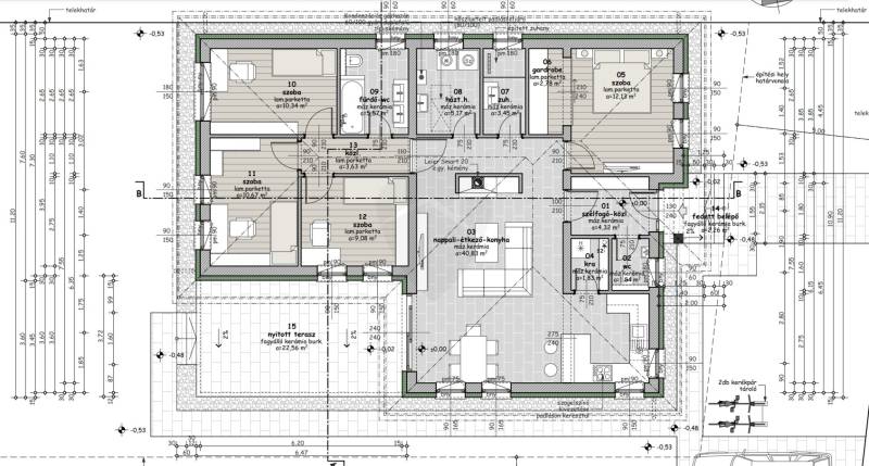 Győr közelében Győrújfalun, újonnan épülő, igényes kialakítású, tégla építésű családi ház leköthető.A nappali + négy szobával(vagy akár több szobával) rendelkező ingatlan alapterülete nettó 110 m2, mely igény szerint módosítható.A praktikusan tervezett házban a szobákon kívül tágas és napfényes amerikai konyhás nappali, gardrób, kamra, szélfogó, közlekedő, fürdőszoba+wc, háztartási helyiség és egy külön mellékhelyiség is kialakításra kerül.Az élhető méretű telek összesen 800 m2-es, mely 30%-ban beépíthető.A feltüntetett vételár az emelt szintű fűtés kész árat és a telek árát tartalmazza, de igény esetén kulcsra kész befejezésre is van lehetőség!Továbbá az ár tartalmazza a komplett tervezői díjat(gépészet, metszetek, statika, energetika, engedélyek), plusz egy inverteres(hűtő-fűtő) klímát!A jelenlegi árajánlatban az otthon melegéről gáz-cirkó kazán gondoskodik, padlófűtéses hőleadással, de a fűtésrendszer is az építtető igényei alapján módosítható!A részletes műszaki leírást és az Építőipari cég weboldalát kérésére e-mailben elküldöm.Más az elképzelése? Válassza ki Ön a saját elképzeléseinek megfelelő alaprajzot!Amennyiben teljesen egyedi tervezést szeretne, az is lehetséges!A képek látványtervek.Jól átgondolt tervezés, megfelelő szakmai tudás és háttér garantálja a MINŐSÉGI OTTHON megvalósítását!További kérdés esetén állok rendelkezésére!Amennyiben megbízható építtetőt szeretne, referenciamunkákkal, minőségi anyagokkal és kivitelezéssel, hívjon bizalommal akár hétvégén is!Teljes körű ügyintézéssel:- Ügyvéd- Biztosítás- Hiteltanácsadás- Generálkivitelezés- Ingatlanértékesítés- Teljeskörű ingatlanfelújítás- CSOK, babaváró, áfa visszaigénylés - állunk rendelkezésére!