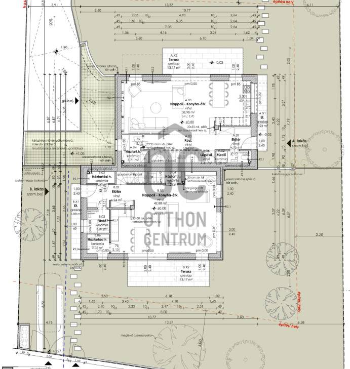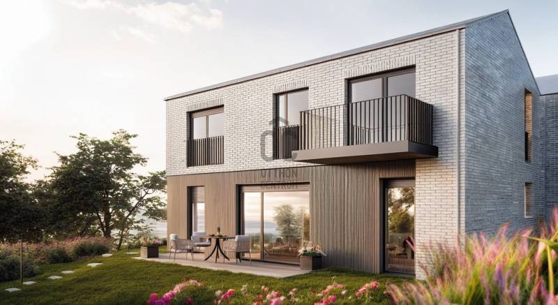 Álmai otthona várja Aranyhegyen! – Új építésű, modern ikerház fél eladóTapasztalt fejlesztő kínál eladásra Aranyhegyen egy új építésű, 4 szobás (nappali + 3 hálószoba) ikerház felet magas műszaki tartalommal, sík, kizárólagos használatú, teljesen szeparált telekrésszel. Az egyedi adottságoknak köszönhetően a kínált ingatlan olyan, mintha önálló családi házat venne. Az ingatlan Aranyhegy közepén, egy már teljesen kiépült, szinte kizárólag új építésű házakkal körülvett lakókörnyezetben helyezkedik el, így ez az utolsó beépítetlen telek a környéken!A lakótér mérete nettó 118,5m2, amely tökéletes elosztást kínál. A földszinten tágas nappali-konyha-étkező, előtér, fürdő és egy háztartási helyiség, míg az emeleten 3 hálószoba és 2 fürdőszoba kap helyet a mellékelt alaprajzok szerinti ideális elrendezésben. A nappaliból leválasztva akár egy 5. szoba is kialakítható eseti igény szerint.Ezen kívül az eladásra kínált ingatlan részét képezi még egy 14nm-es kertre néző terasz, illetve egy 4,5nm-es emeleti erkély panorámás kilátással, valamint a 2db kényelmes méretű gépkocsi udvari beálló.Energiatakarékos, környezettudatos kialakítás:Az ingatlan alapesetben BB energetikai besorolással rendelkezik, azonban napelemek telepítésével AA++ kategóriára fejleszthető – garantált energiatakarékosság és fenntarthatóság!Kiemelkedő műszaki tartalom:Monolit vasbeton födém, kerámia falazat;Hőtechnikailag méretezett grafitos hőszigetelés;Háromrétegű nyílászárók;Levegő-víz hőszívattyús, energiatakarékos hűtés-fűtési rendszer – mennyezet hűtés-fűtés, padlófűtés;Motoros redőnyök szúnyoghálóval;Magas minőségű hideg- és melegburkolatok, szaniterek, csaptelepek és belső nyílászárók,motoros kapuvideó kaputelefondurva tereprendezésAz ár kulcsrakész állapotra vonatkozik.Szolgáltatások a közelben: élelmiszerbolt, pékség, játszótér, kávézó, kutyafuttatóTömegközlekedés: A 219-es és 160-as buszjáratok megállói 5-10 perc sétatávolságon belülÁtadás várható ideje: 2026 II. félévTeljes körű ügyintézéssel várom a hívását a hét minden napján!