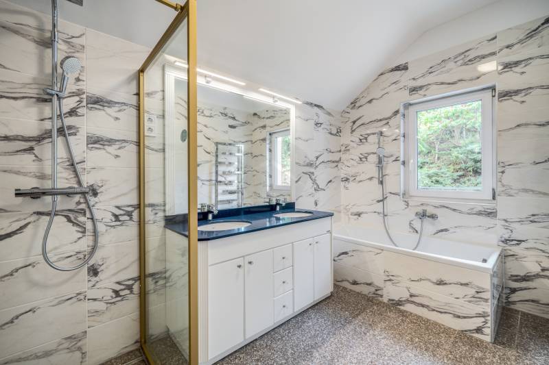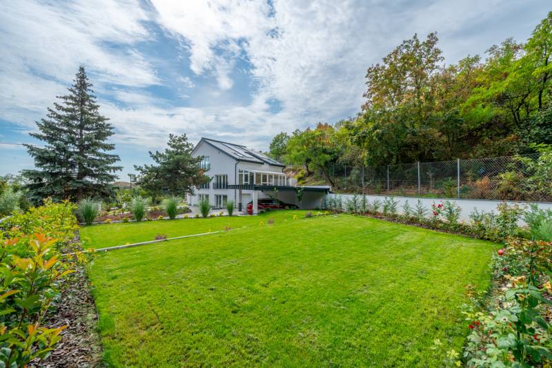 EXKLUZÍV ÖRÖKPANORÁMÁS LUXUSVILLA BUDAÖRS LEGKIEMELKEDŐBB LOKÁCIÓJÁN!!!!!!!!!!!! Fedezze fel ezt a páratlan adottságokkal rendelkező, háromszintes luxusvillát Budaörs egyik legelőkelőbb részén, a Zengő utcában! Ez a 2023–2024-ben újjáépített, 300 m²-es, hét szobás rezidencia a modern építészet és az időtlen elegancia tökéletes harmóniáját nyújtja. A 1178 m²-es, gondosan parkosított kerttel körülvett ingatlan nem csupán egy otthon, hanem egy életstílus, ahol a kényelem, a kifinomultság és a természet közelsége egyesül.Az ingatlan különlegességei:Három teljesen önálló, exkluzív lakótér – mindhárom szint saját konyhával és fürdőszobával rendelkezik, így ideális többgenerációs családoknak vagy befektetési célra.Lenyűgöző örökpanoráma – a hatalmas ablakokon keresztül páratlan kilátás nyílik a budai hegyekre és a városra, amely minden napot különlegessé varázsol.Magas minőségű anyaghasználat – minden szinten exkluzív gránit padlóburkolat található, amely nemcsak esztétikus, hanem rendkívül tartós és könnyen karbantartható.Modern és fenntartható fűtés-hűtés rendszer – energiatakarékos hőszivattyú gondoskodik a téli és nyári komfortérzetről, padlófűtéssel és fan-coil rendszerekkel kombinálva.Intelligens energiafelhasználás – a napelemek napi 7 kWh teljesítménnyel biztosítják a háztartási gépek energiaellátását, miközben az automata öntözőrendszer esővízgyűjtő ciszternákhoz csatlakozik, fenntartható víz felhasználást biztosítva.Prémium kategóriás konyhák – minden szinten teljesen gépesített, beépített konyhabútorokkal felszerelt, exkluzív kivitelezésű főzőterek várják a gasztronómia szerelmeseit.Luxus fürdőszobák – gránitburkolattal, exkluzív szaniterekkel és elegáns kialakítással.Magas szintű biztonság – emeletenként külön riasztórendszer, videós kaputelefon és igényesen kialakított kovácsoltvas utcai kerítés garantálja a zavartalan nyugalmat.Exkluzív pincehelyiség – a földszinti lakáshoz tartozó boltíves, téglaburkolatú borospince tökéletes helyszíne lehet baráti összejöveteleknek vagy borkóstolóknak.A gondosan tervezett kert és kültér:Igényesen parkosított, gyönyörű gyepszőnyeggel, térkőburkolattal és dísznövényekkel kialakított privát kert.Hangulatos napelemes díszkivilágítás, amely különleges atmoszférát teremt az esti órákban.Modern automata öntözőrendszer, amely biztosítja a növényzet frissességét és gondozottságát egész évben.Lokáció és megközelíthetőség:Páratlan elhelyezkedés – csendes, zöldövezeti környezetben, mégis kiváló közlekedési kapcsolatokkal.Autóval: mindössze 19 perc a Széll Kálmán tértől, 5 perc az M7-es autópályától és 3 perc a balatoni főútvonaltól.Tömegközlekedéssel is könnyedén elérhető, így Budapest belvárosa gyorsan és kényelmesen megközelíthető.Kiváló parkolási lehetőségek:1 db házba épített garázs,3 db fedett kocsibeálló.Ez a tehermentes, prémium kategóriás ingatlan nem csupán egy otthon, hanem egy életérzés – egy olyan hely, ahol a természet közelsége, a korszerű technológia és az elegáns dizájn tökéletes egyensúlyban találkozik. Ne hagyja ki ezt az egyedülálló lehetőséget! Lépjen kapcsolatba velünk, és fedezze fel személyesen ezt a varázslatos, exkluzív rezidenciát!