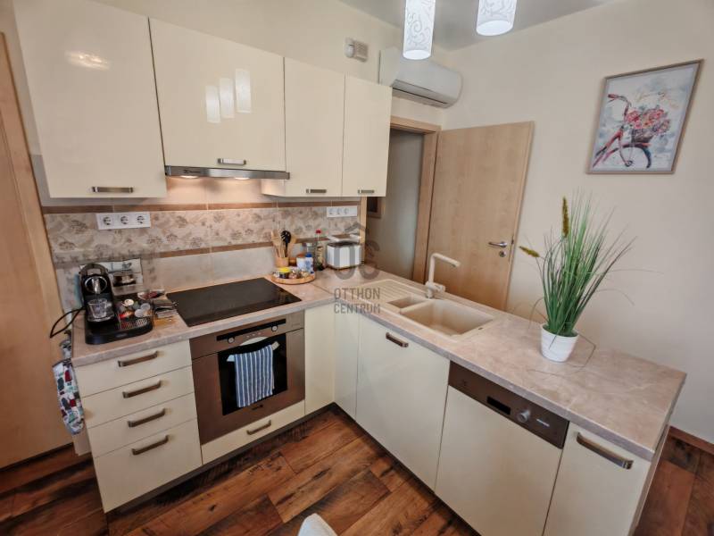 A Panoráma strand szomszédságában igényes kialakítású társasházi lakás lehet az Öné.A 2 emeletes épület féltetőterében kapott helyet a 2 szoba plusz amerikai konyhás nappali kialakítású jó elrendezésű lakás.A fűtésről házközponti rendszer gondoskodik radiátorokkal, a nyári komfortot klímaberendezés biztosítja, a meleg vizet villanybojler adja. Az ingatlan télen-nyáron egyaránt használható, állandó életvitelre vagy akár kiadásra is alkalmas.A távvezérelt kapuval biztosított udvaron minden lakáshoz tartozik egy parkolóhely is. A tulajdonosok egy zárható kapun keresztül bármikor látogathatják a Panoráma strandot. Az ingatlanban található bútorok, berendezési tárgyak átvétele megegyezés tárgya.Fonyód a Balaton déli partjának kilátója, csodás panorámával az északi part hegyeire.Kiváló közlekedése, kikötője miatt rendkívül népszerű üdülőhely és turistaközpont.Jöjjön és szeressen bele ebbe a kivételes helyen fekvő ingatlanba.Előzetes egyeztetéssel rugalmasan megtekinthető.