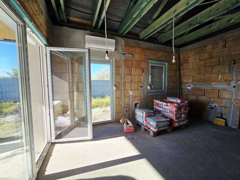 Eladásra kínálunk Siófok belvárosában, az aranyparti szabadstrandtól mindössze 1500 méterre egy újépítésű, földszintes, önálló családi házat, amely kulcsrakészen kerül átadásra. A kivitelezés során kiemelt figyelmet kapott a minőség, a modern technológia és az energiatakarékosság – így ez az ingatlan hosszú távon is ideális választás.Főbb jellemzők:Földszintes önálló házat terveztünk, mely 76,24 m2-es alapterületű + a terasz.A ház 3 szobával, nappalival-amerikai konyhával, közlekedő, előtér, fürdőszoba +wc, külön wc, terasz, helységekből áll. A tartószerkezeti falak 30-as porotherm téglából készültek, a padlón 10cm lépésálló szigeteléssel, a homlokzatokon 15cm-es EPS szigeteléssel, a vízszintes födémen 25 cm ásvénygyapot szigeteléssel. A külső nyílászárók korszerű 6 légkamrás, 3 rétegű üvegekkel szereltek.Fűtéséről és a használati melegvízről monoblockos levegő-víz hőszivattyú gondoskodik, padlón történő hőleadással.Burkolatok, szaníterek, beltéri ajtók egy megadott árkategóriában választhatók.A ház a legújabb energetikai szabályoknak is megfelel.Továbbá az ár tartalmazza a 3 D-s kerítést, és a tereprendezést.A projekt részletei:A telken 5 darab önálló ház alapja elkészült, a tartószerkezeti falak kialakítása folyamatban van. Az ingatlanokhoz szükséges tégla, cserép, fa anyag, nyílászárók beszerzése megtörtént.Mindegyik külön bejárattal és kerítéssel, 2 felszíni autó beállóval rendelkezik.Az ingatlanokat kivitelező cég építi, várható átadás 2025 harmadik negyedév.A Balaton csupán 15 perces sétára található, míg a környéken minden elérhető: iskola, gyógyszertár, bevásárlási lehetőség – mindössze néhány perc távolságra. Az ingatlanok nem közvetlenül a főút és nem a Balaton felé eső oldalon épülnek, így ideális a nyugalmat keresők számára is.Az ház állandó otthonnak éppúgy tökéletes, mint nyaralónak, illetve befektetésnek.Érdeklődő ügyfeleinknek a tervdokumetációt és a műszaki tartalmat készséggel rendelkezésre bocsájtjuk.INGYENES hitel tanácsadás, CSOK Plusz ügyintézés!BANKFÜGGETLEN hitelcentrumunk az összes elérhető bank és hitelintézet ajánlatát versenyezteti az Ön kedvéért.Amennyiben hirdetésem felkeltette az érdeklődését vagy egyéb információra van szüksége hívjon bizalommal!