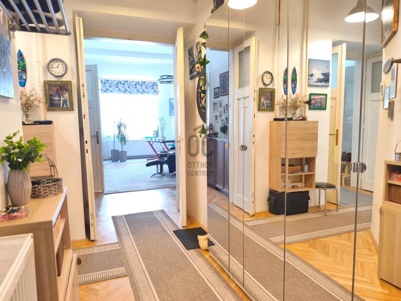A szecesszió stílujegyeiben épült az 1910-es évek elején a ház, ahol ez az igényesen felújított 99 m2-es lakás található. A három lifttel rendelkező épület kitűnően karbantartott, tiszta, csendes, kulturált. A lakás magasan, még félemelet felett, az első emeleten helyezkedik el, és hatalmas ablakainak köszönhetően rendkívül világos. 2022-ben teljeskörű felújításon esett át. A fűtést biztonságos és takarékos kondenzációs Viessmann kazán szolgáltatja. A nappaliba és a két hálószobába hütő-fűtő klíma is beszerelésre került .A lakás helyiségei:- amerikai konyhás nappali/étkező- nagy hálószoba, innen nyíló diszkrét mosdós wc-vel-nagy utcai szoba- különálló WC.Az utca felé néző nappali és az egyik hálószoba minden évszakban szép világos. A nagyméretű, másik hálószoba csendes, hátsó udvarra néz. A két külön háló miatt alkalmas akár családok számára is. A közös költségen felül csak a villany, gáz és víz/csatona díj fizetendő.Sétatávolságban a belvárostól, a lakás mellett található a Nehru-part, Duna menti sétány, a Bálna, az utca másik végén a frissen felújított, hangulatos Bakáts tér, éttermek, kávézók, élelmiszerboltok. Szintén sétatávra található a Corvinus és a SOTE.További információkért, ill. az ingatlan személyes megtekintéséért hívjon bizalommal.
