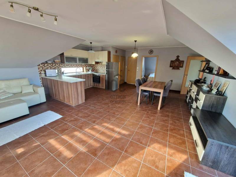 Eladó lakás Tatán, a közkedvelt Fazekas utcában – 3 szoba + amerikai konyhás nappali, erkéllyel, garázzsalAz ingatlan főbb jellemzői:A 2013-ban épült, mindössze négy lakásos társasház első emeletén helyezkedik el, egy olyan épületben, amely két különálló egységből áll, épületenként két-két lakással.Az ingatlan három külön nyíló hálószobával és egy tágas amerikai konyhás nappalival rendelkezik. Az elosztása kiváló, hiszen minden szoba önállóan megközelíthető. A nappaliból egy 15 nm-es erkélyre léphetünk ki, ahonnan gyönyörű kilátás nyílik a Kálvária-dombra.A fűtésről és a melegvíz-ellátásról Saunier Duval gázkazán gondoskodik. A szobákban radiátorok, míg a többi helyiségben padlófűtés biztosítja a kellemes hőérzetet.A nyílászárók fa anyagból készültek, hőszigeteltek, így esztétikusak és energiatakarékosak.A társasház rendszeresen karbantartott kertjét profi kertész gondozza, így a lakók mentesülnek az udvar rendben tartásának terhei alól.Elhelyezkedés, környezet:A Fazekas utca Tata egyik legnépszerűbb részén található, ahol ritkán kerül piacra eladó ingatlan.Az Öreg-tó mindössze 600 méterre, a Kossuth tér 250 méterre, a Kálvária-domb pedig 400 méterre helyezkedik el, így minden könnyen elérhető gyalogosan is.A közelben óvoda, iskola, bevásárlási lehetőség, posta, orvosi rendelő és kórház is megtalálható, pár száz méteren belül.A lakáshoz tartozó garázs és tároló kötelezően megvásárlandó, amiknek az együttes ára 16.000.000Forint.További információért várom hívását!
