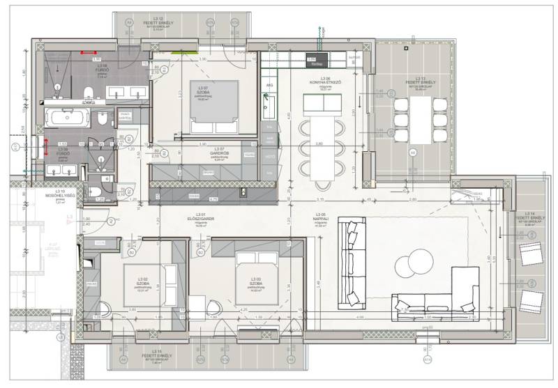 Hiánycikk a piacon! Központi, mégis csendes helyen, nagy erkéllyel, városi panorámával. Kell ennél több? Üdv itthon!RÖVID ÖSSZEFOGLALÓBudapest II. kerületének Rézmál részén eladó új építésű társasház első emeleti panorámás 141 m² -es nappali + 3 hálószobás két fürdőszobás négy erkélyes lakás opcionálisan megvásárolható garázsokkal, tárolóval.LOKÁCIÓA II. kerület egyik legkedveltebb részén, a Rózsadombon, a csendes és elegáns Lévay utcában épül a legújabb prémium társasház. A környék kimagasló életminőséget kínál: zöldövezeti nyugalom, kiváló levegőminőség és a városi kényelem tökéletes egyensúlya jellemzi. Mindössze néhány percnyire találhatók bevásárlási lehetőségek, kávézók és éttermek, valamint presztízsértékű iskolák és óvodák. A Mammut Bevásárlóközpont, a Millenáris Park és a Mechwart liget könnyen elérhetők, a Margit körút közelsége pedig kiváló közlekedési kapcsolatokat biztosít.LÉVAY 8Az ötlakásos társasház építése 2026 harmadik negyedévében fejeződik be, kimagasló minőségű anyagokkal és modern műszaki megoldásokkal. A projekt célja, hogy exkluzív, tágas otthonokat kínáljon azok számára, akik a természet közelségét és a nagyvonalú belső tereket egyaránt értékelik.LAKÁSAz alaprajz tökéletes egy család számára: tágas, világos, jól kihasználható terekkel rendelkezik, biztosítja a közös élményeket és a privát elvonulást is, miközben a kültéri kapcsolatok erősítik az otthon élhetőségét.✅ Teraszkapcsolat minden szobából – A közvetlen kültéri kapcsolat lehetőséget ad a szabad levegőn való pihenésre, akár egy reggeli kávézásra a hálószobából kilépve, akár közös családi étkezésekre a nappali előtti teraszon. Ez különösen előnyös gyerekekkel, hiszen biztonságos és könnyen hozzáférhető szabadtéri tér áll rendelkezésre.✅ Tágas közösségi tér – A nappali, étkező és konyha összefonódó kialakítása lehetővé teszi, hogy a család tagjai együtt töltsék az időt anélkül, hogy a terek túlzsúfolttá válnának. A térben eltolt konyha előnye, hogy megőrzi a kapcsolatot a nappalival, de a főzés mégsem válik zavaróvá.✅ Privát szférát biztosító hálószobák – A hálószobák szeparáltan helyezkednek el, így minden családtag számára biztosított a nyugodt pihenés. A szülői háló és a gyerekszobák egymáshoz közeli, de mégis megfelelően elkülönített elhelyezkedése ideális egy család számára.✅ Kényelmes fürdőszobai elosztás – Több fürdőszoba áll rendelkezésre, ami csökkenti a reggeli készülődés miatti torlódásokat, és lehetővé teszi, hogy a család minden tagja kényelmesen használja azokat.✅ Praktikus közlekedők és tárolók – A tárolóhelyek elhelyezése hatékony, segítve a rendezettség fenntartását. Az előszoba és egyéb tárolók megfelelő méretűek, így a kabátok, cipők, táskák is könnyen rendszerezhetők.Műszaki megoldások és extrákA lakás hőszivattyús hűtés-fűtés és hővisszanyerős szellőztető rendszerrel készül, amely energiatakarékos és környezetbarát megoldást biztosít. Loxone okos otthon rendszer kerül beépítésre, fokozva a kényelmet. A nagy üvegfelületek maximális természetes fényt engednek be, míg a prémium burkolatok és belsőépítészeti részletek a legmagasabb igényeket is kielégítik. A lakáshoz két garázs (30 000 000 Ft/2db) és egy tároló (12 000 000 Ft) is tartozik mely igény szerint megvásárolható.ÁtadásA projekt várható átadása 2026 harmadik negyedévében történik.Ez az otthon ideális választás azoknak, akik egy tágas, modern és exkluzív lakásban szeretnének élni Budapest egyik legnívósabb városrészében.---------------------------------------------Díjmentes, bankfüggetlen hiteltanácsadással támogatjuk vevő ügyfeleinket a számukra legelőnyösebb finanszírozási döntések meghozatalában. Opcionálisan igénybe vehető kiegészítő szolgáltatásainkkal – mint ügyvédi közreműködés, energetikai tanúsítvány vagy villamos biztonsági felülvizsgálat – teljes körű szakmai támogatást nyújtunk az adásvétel folyamatának minden egyes lépésénél.----------------------------------------------A hirdetésben szereplő információk tájékoztató jellegűek. A tévedés és az árváltoztatás jogát fenntartjuk. Az esetleges elírásokért és technikai hibákért felelősséget nem vállalunk.
