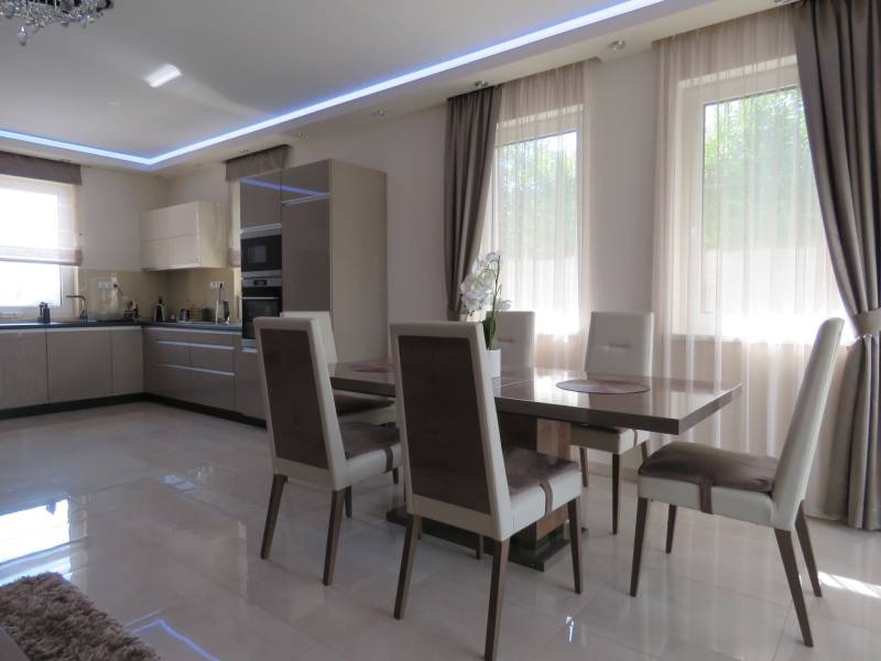 Eladó Nagytarcsán, az Öregszőlő Lakóparkban egy 718 nm-es telken, 2022-ben épült, cirkó fűtéses, nappali + 3 szobás, nettó 128 nm-es (bruttó 134 nm) családi ház.A körbejárható családi ház saját részre minőségi anyagok felhasználásával épült.AZ INGATLANRÓL:- egyénileg tervezett és épített bútorok a konyhában és a nappaliban- klimatizált helységek- a ház biztonságát riasztó és kamera rendszer vigyázza - az ablakok háromrétegű üvegezéssel, szúnyog hálóval és automata redőnyökkel készültek- a kővel burkolt felületek alatt padlófűtést, a hálószobákban radiátoros fűtést építettek ki- a térkővel burkolt kert részen a garázs mellett még 3 gépkocsi elhelyezhető- a kertészek által gondozott kert automata öntöző berendezéssel ellátott- a nyári melegeket a kertben épített medence segít enyhíteni, a mellé épült árnyékos szaletlivelAmennyiben megtekintené az ingatlan várom megtisztelő hívását.Az ingatlan megvásárlását bank független hitelügyintézéssel segítjük.