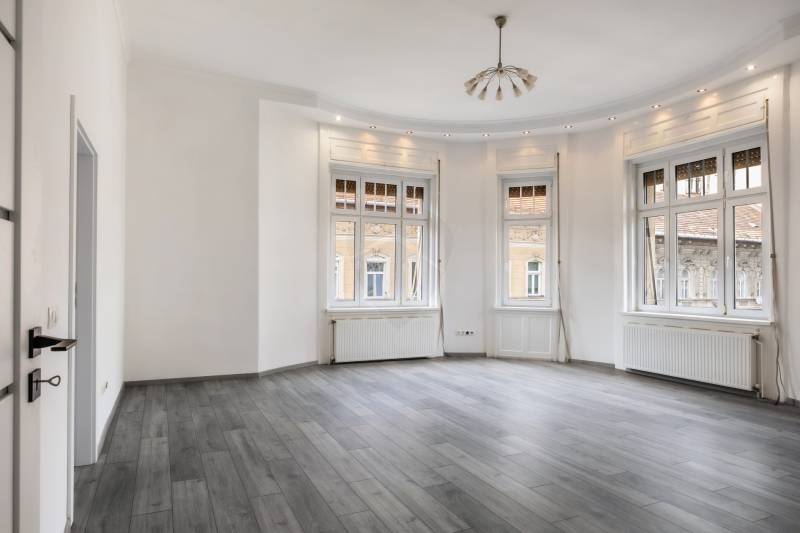 Fedezze fel ezt a különleges, frissen felújított lakóingatlant Budapest 07. kerületében. A LAKÁS: A 3. emeleti , liftes házban, nyugat és észak-nyugat tájolású, hűtő-fűtő klímás saroklakás 3 külön bejáratú, napos szobával rendelkezik. Az egyik szobához egy 4 nm-es gardrób került kialakításra. Belmagasság: 3,6m, tehát fekvőgaléria kialakítható.A víz, a csatorna és villany hálózat illetve a burkolatok, a nyílászárók (a belső ajtók, illetve a hang, - és hőszigetelt külső ablakok és ajtók) teljes körű cseréje megtörtént, a lakás felújítása 2 hete fejeződött be.A lakás három tágas szobával és egy félszobával rendelkezik, melyek mindegyike a minimalista kialakítás jegyében készült, így a térérzet maximálisan kihasználható.A tágas nappali, amely az amerikai konyhával egy légtérben helyezkedik el, ideális helyszín a családi összejövetelekhez és baráti találkozókhoz. A prémium kivitelezés garantálja, hogy a lakás minden részlete a legmagasabb elvárásoknak is megfelel. A fürdőszoba modern berendezése és a gáz (cirkó) fűtés biztosítja a kényelmet és a kellemes hőmérsékletet a hideg téli hónapokban is.A közelben van az Állatorvosi Egyetemen tanuló – jellemzően külföldi - diákok jelenleg is két lakást is bérelnek a házban, az egyetem közelsége miatt a piacinál magasabb díjért.Séta távolságon belül a Hősök tere/Városligetben: Műjégpálya, Széchenyi Termálfürdő és Uszoda, múzeumok, sportpályák, kutyafuttatók, szabadtéri edzőtermek, futópálya, stb… Parkolás: az utcán parkolási díjköteles, de kizárólagos lakossági parkolási engedély igényelhető OTTHON START Program: A lakás per-, teher- és igénymentes, azonnal költözhető és alkalmas az új 3%-os hitel igénybevételére is!Ne hagyja ki ezt a lehetőséget,hívjon most.