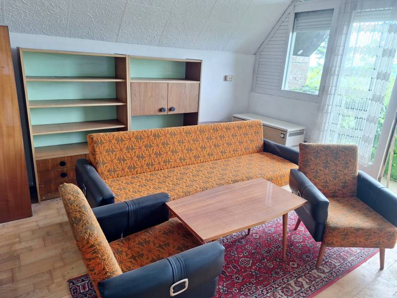 Hegymagason, forgalmas főút mellett, jól megközelíthető helyen kínálunk eladásra egy kétszintes, 74 m²-es nyaralót, 1000 m²-es telken.Az ingatlan elosztása kiváló:3 hálószoba2 nappalikonyha és kamrafürdőszoba + külön WC kézmosóvalerkély, ahonnan részleges kilátás nyílik a Balatonra és a hegyekreMűszaki jellemzők:Víz és villany bekötve, szennyvíz elvezetése derítővel megoldottFúrt kút a kert locsolásáhozFűtés villanykályhával vagy hagyományos kályhávalFa nyílászárókA telek teraszos elrendezésének köszönhetően, több részen is található kiülőnek, vagy kerti tevékenységnek alkalmas hely.Egy pince és egy garázs, valamint további melléképületek is megtalálhatók.Az ingatlan egy összesen 2759 m2 nagyságú osztatlan közös telken fekszik, melyből az 1000 m2 nagyságú telek és a rajta lévő ingatlan eladó.Kifüggesztésköteles.Az elhelyezkedése miatt nyaralónak vagy kiadási célra is jó választás.Ne maradjon le erről a sokoldalúan hasznosítható ingatlanról – keressen bizalommal a megtekintésért!