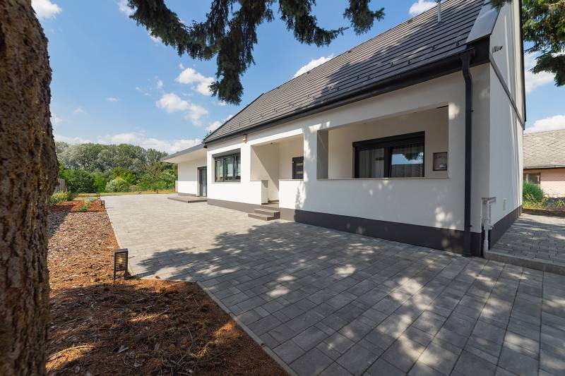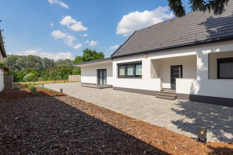 A XVII. kerületben Rákoscsabán, 2052 nm-es telken (amely további épülettel bővíthető), 2024-ben teljeskörűen felújított, magas minőségű alapanyagok és műszaki megoldásokkal kivitelezett 116nm alapterületű családi otthon eladó.Az ingatlan a XVII. kerületében, Rákosmente Rákoscsaba városrészében található kertvárosi jellegű környezetben. Az ingatlan közelében az ingatlanhoz hasonló típusú és korú, valamint újabb építésű ingatlanok, családi házak találhatók, ahol a teljes infrastruktúra elérhető és a bevásárlási lehetőségek megoldottak. Megközelítés – tömegközlekedéssel: a 169E jelzésű BKK autóbuszjáratok Pöröly utca - megállójától az ingatlan 1-2 perces séta távolságra található. Gépjárművel a Kerepesi út – Keresztúri út – Pesti út – Péceli út – Battonya utca útvonalon is elérhető az ingatlan, az M0 autópálya pár perces autózással megközelíthető. Parkolás az ingatlan előtt, valamint a telek területen, térkövezett, nyitott gépkocsi beállón több autó számára lehetséges.Az eredeti lakóépület valamikor a XX. század elején épült, majd 2024-ben gyakorlatilag újra építették. Alapozás: 1 méteres beton aláalapozás, és 25 cm-es aljzat beton. Az alsó födém 50 cm-es betonfödém. A függőleges teherhordó falazat B30-as tégla, a külső 20 cm-es kőzetgyapot szigeteléssel ellátott, vakolt, színezett, a falak impregnáltak. A fa ácsszerkezetű összetett nyereg- és félnyereg tető betoncserép héjalású, a födém 20 cm-es kőzetgyapottal szigetelt. A lakásba a villany (3x32A), gáz-, víz-, csatorna közmű bekötött. A külső nyílászárók műanyag tok- és szárnyszerkezetű ablakok, 3 rtg. üvegezéssel, redőnnyel felszerelve, a bejárati ajtó 3 ponton záródó biztonsági ajtó, a beltéri ajtók prémium minőségű ajtók. A belső homlokzat felületképzése simított vakolat festéssel, műgyantával, a vizes helyiségek festettek és csempések is. A padló- és falburkolatok magas igényszintet tükröznek, szerkezeti és esztétikai hibáktól mentesek. Álmennyezet, rejtett világítással, kialakított. A fűtést és a használati melegvíz ellátást új, Bosch kondenzációs kazán biztosítja, a hőleadás radiátorokkal és padlófűtésen keresztül történik. A lakás klimatizált (hűtő-fűtő klímák), az ingatlan riasztó- és kamera rendszerrel felszerelt, a konyha gépesített.Az építési övezet 60 méter mélységet elérő vagy meghaladó telkein legfeljebb 2 db főrendeltetésű épület helyezhető el, az épületekben annyi önálló rendeltetési egység helyezhető el, hogy minden önálló rendeltetési egységre 300 m2 telekterület jusson, de a telken legfeljebb 2 önálló rendeltetési egység létesíthető.Az ingatlan tehermentes, azonnal birtokba vehető.