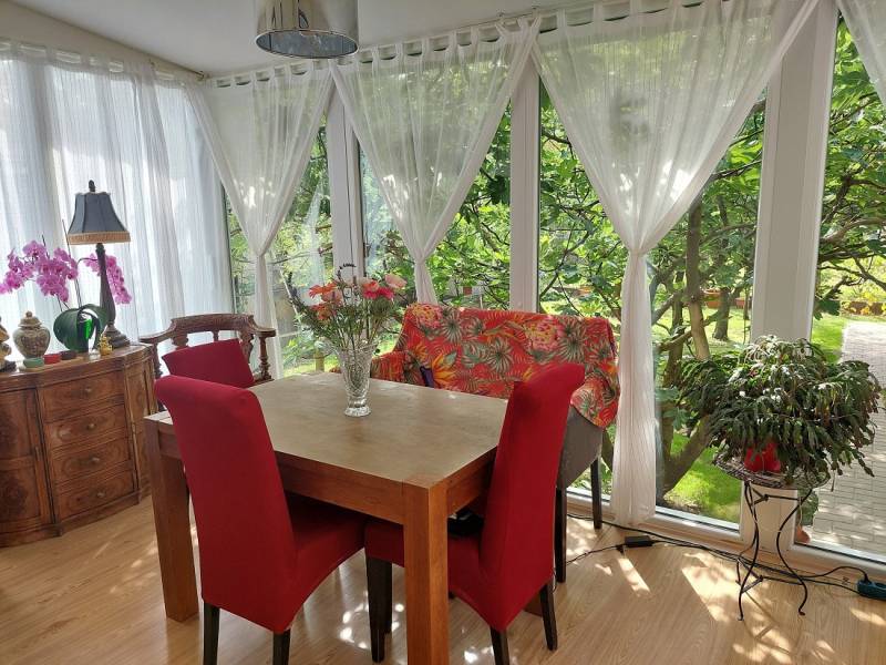 A strandtól csupán 400 méterre kínálunk eladásra egy nappali + 3 hálószobás ingatlant.A ház a 70-es évek végén, téglából épült. Pár éve külső-belső felújításon esett át, új nyílászárókat, kívülről pedig szigetelést is kapott.Fűtése elektromos fűtőpanelekkel megoldott.A nappaliból egy hatalmas 35m2-es, árnyas teraszra léphetünk ki, amely növényekkel határolva ad intimitást az utca felől.Az épület hátsó részén gyönyörű, három oldalról, üveggel körülvett étkező található, amely alkalmas nagyobb vendégség fogadására is.A 720m2-es kert szépen gondozott, dísznövényekkel tarkított. Locsolása fúrt kútból megoldott.A hátsó részen gyümölcsfákkal beültetett. Almafák, szilva, barack, cseresznye, mellettük fűszernövények, paradicsom.A kertben még egy különálló 21m2-es épület is található, amely egy teljes értékű lakórésznek felel meg, konyhával, fürdőszobával felszerelt.A kisházhoz egy tároló és egy fedett beálló is csatlakozik.Gyalogosan vagy biciklivel, Balatonföldvár központja, a Yacht kikötő, a csodás Kvassay sétány, éttermek, bevásárlási lehetőség is percek alatt elérhető.Felkeltettem érdeklődését?Hívjon, akár hétvégén is!