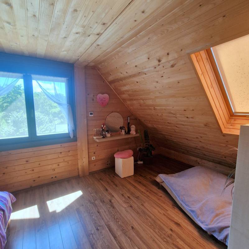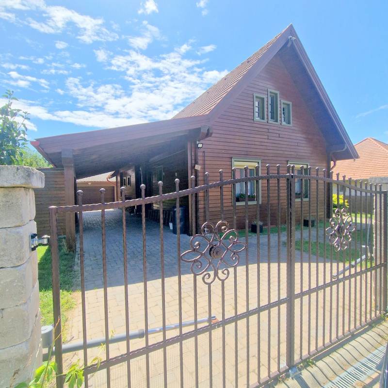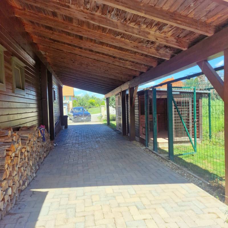 Szerelem első látásra? Zalaegerszegtől mindössze 9 km-re, Nagypáli lakóparkjában eladóvá vált egy 792 nm-es teleken elhelyezkedő 2006-ban épült, 138 nm-es, két szintes gerendaház! A ház minőségi anyagokból és képzett szakemberek által épült. Az ott lakók kényelmét a földszinten egy igényes, gépekkel felszerelt konyha-étkező+kamra, tágas nappali, 2 szoba, fürdőszoba, külön mellékhelyiség kézmosóval, mosókonyha, előszoba, fedett terasz, míg az emeleten 1szoba +1 lakosztály (fürdőszoba, gardrób, hálószoba) és egy különálló gardrób biztosítja.A tágas nappaliból lehet kimenni a fedett teraszra, ami egyetlen mozdulattal téliesíthető. Ide egy ajtón át is be lehet jönni az udvarról, és ha van házi kedvenc, akkor ő is tudja használni a rajta lévő kutya ajtót.A házon és házban található összes nyílászáró, illetve a ház belső burkolata 7 éve került felújításra, ahogy a kőrisfából készült egyedi konyhabútor és terasz is.A nyílászárók Remmers (német) felületkezelt lucfenyőből készültek olíva zöld színben. Az ablakokon redőny és szúnyogháló is található.A család autói a dupla, fűthető garázsban pihennek, ahová egy fedett kocsibeállón keresztül lehet bejutni. Így eső esetén is szárazak maradhatunk.A garázs tetején 35 db napelem található, melyek biztosítják, hogy a fűtésszámla garantáltan alacsony maradjon. A garázs mögött található még egy fedett pihenő és grillező sarok.A házban télen a meleget infrafűtés biztosítja, de a nappaliban egy fa tüzelésű kandalló is található.Az udvaron található még egy normál méretű lebetonozott kosárpalánk, a sport szerelmeseinek.A házi kedvencnek pedig külön lakosztálya van az udvaron, egy félig fedett kennel, hőszigetelt kutyaházzal és füvesített, zárt, zárható kifutóval.A terület három oldalról 3D-és kerítéssel van körbe kerítve, az utca frontról pedig kő és kovácsoltvas kerítés nyújt biztonságot. Az autók által használt kapu elektromos, ahogy a garázs kapuja is.A házon kiépített kamera rendszer található.Az ingatlan per és tehermentes, teljes kifizetést követően új tulajdonosa nevére kerülhet. A kormány által nyújtott új 3%-os kedvezményes hitel igénybe vehető az ingatlanra.Amennyiben az ingatlan felkeltette érdeklődést keressen bizalommal!