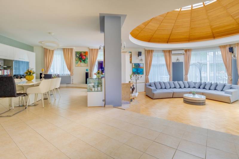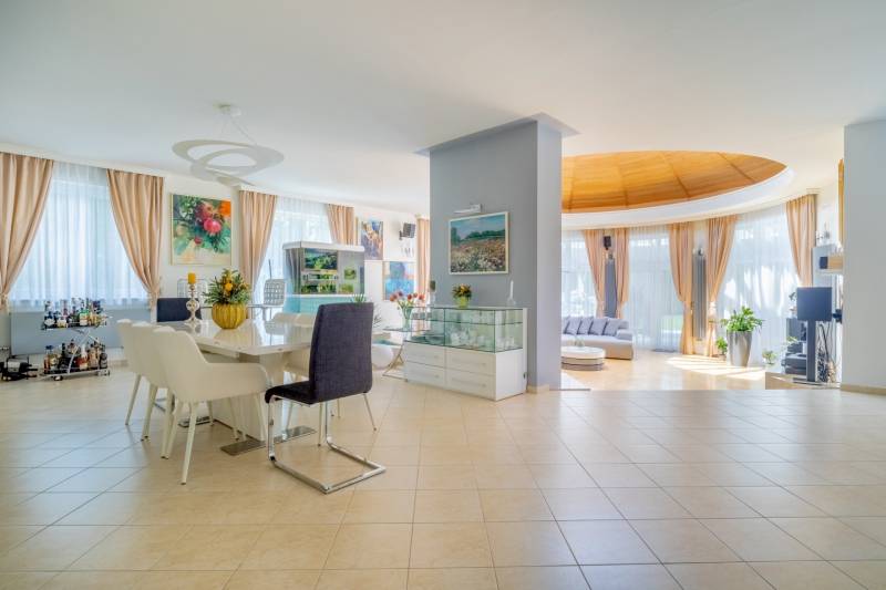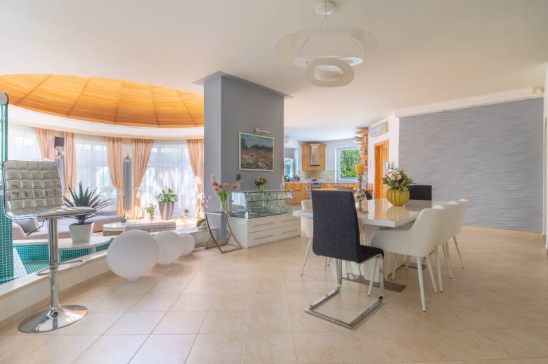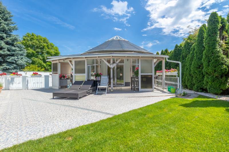 Új tulajdonosát keresi Páty kedvelt részén egy önálló, tégla építésű, akár két generáció együttélésére is alkalmas családi ház, mely 2002-ben épült, nettó 285, bruttó 345 négyzetméteres alapterülettel, 966 m2-es, szépen gondozott, privát kert veszi körül, medencével, két állásos garázzsal és további két autóbeállóval. Ha igényesen kivitelezett, különleges házat és modern, de meghitt életteret keres családja számára ezt a házat feltétlenül nézze meg!KÖRNYÉK ÉS KÖZLEKEDÉS:- Páty a Zsámbéki-medence délkeleti peremén fekszik, családok, csendes életre vágyók és vidéki-ligetes hangulatot keresők által különösen kedvelt település.- Budapesttől kb. 20–25 km-re helyezkedik el, az M1 es autópálya mellett.- A ház Pátykert városrész egyik zsákutcájában található, kertvárosi környezetben, nyugodt, folyamatosan fejlődő, meseszép településen.- Közelben van zöld terület, adott a tiszta a levegő, a barátságos környezet, jó a közbiztonság és a közlekedés.- Iskolák, óvodák, bölcsődék, boltok kényelmesen elérhető távolságban vannak.- A szomszédok kedves, barátságos emberek, figyelmesek egymással.- Tömegközlekedési eszközök 10 perc séta távolságban elérhetőek.- A környező hegyvidékek – például Nagy Kopasz – túraútvonalaival ideális a kikapcsolódáshoz.- A Sasfészek tó tanösvénye vízimadár megfigyeléssel várja a látogatókat, kellemes piknikezési lehetőségekkel.A HÁZ ÁLTALÁNOS JELLEMZŐI:- 2002-ben, 966 m2-es parkosított telekre épült, MINDEN IGÉNYT KIELÉGÍTŐ épület.- 38 cm Porotherm téglából épült, 12 cm szigetelést kapott, monolit vasbeton födémmel ellátott.- A telek kelet-nyugati tájolású, az utcafront szélessége 18 méter.- A ház kiváló adottságú, átgondoltan tervezett, MAGAS MINŐSÉGŰ anyagokkal kivitelezett.- A 2 szintes, 6 szobás épület alapterülete nettó 285 m2, bruttó 345 m2-es.- A földszinten 191 m2 élettér áll rendelkezésre, amely két jól elszeparált részből tevődik össze. - Jobb oldalon a ház központi része, a közel 90 m2-es, egész nap FÉNYÁRBAN ÚSZÓ amerikai konyhás nappali és étkező található, ahol egy különleges építészeti megoldással kialakított FELÜLVILÁGÍTÓ KUPOLA természetes fénnyel árasztja el a helyiséget, továbbá egy szoba is megtalálható.- Bal oldalon helyezkedik el szülői hálószoba, gardróbbal, külön fürdőszobával, továbbá három szoba és egy fürdőszoba mellékhelyiséggel, így biztosítva a család teljes nyugalmát. - A minőségi kivitelezésnek köszönhetően a műszaki állapota kiváló.- A modern belső tér hangulatát az IGÉNYES BURKOLATOK és a hatalmas üvegfelületek határozzák meg.- A Rehau műanyag nyílászárók hőszigetelő üvegezéssel lettek ellátva, belső nyílászárók fa szerkezetűek.- A Weishaupt kondenzációs gáz fűtési rendszer biztosítja a megfelelő hőmérsékletet és a meleg vizet. - Égéstermék elvezetéséhez Schiedel kéményeket alkalmaztak, a ház hűtését klíma biztosítja.- Az igényesen kialakított, privát, PARKOSÍTOTT KERT mellett egész évben használható FEDETT MEDENCE szolgálja a kényelmet.- Az alsó szinten található KÉT ÁLLÁSOS GARÁZS mellett, további két nyitott autóbeállási lehetőség van.AZ ALSÓ SZINT FELOSZTÁSA:- kazánház mosókonyhával,- SZAUNA fürdőszobával,- külön mellékhelyiség,- KONDITEREM és közösségi tér amely teljesértékű ablakkal ellátott, kapcsolódik a garázshoz és a belső lépcsőn keresztül megközelíthető földszinti lakótérhez.- ez a szint alkalmassá teszi a házat több generáció együttélésére is. FÖLDSZINT FELOSZTÁSA:- a keleti oldalon található a SZÜLŐI HÁLÓSZOBA GARDRÓBBAL és saját fürdőszobával,- további 4 hálószoba,- fürdőszoba zuhanyzóval, JAKUZZIVAL és mellékhelyiséggel,- a nyugati oldalon található a közel 90 m2-es amerikai konyhás nappali étkezővel,- FEDETT TERASZ medence és kert kapcsolattal.FENNTARTÁSI KÖLTSÉGEK:- A ház magas minőségben épült, műszaki állapota kiváló, a Weishaupt fűtési rendszernek és nyílászáróinak köszönhetően a gáz költsége nagyságrendileg 30.000.- Ft.- A vízdíj medence használatával együtt 15-20.000.- Ft, az áram 20-30.000.- Ft között, fogyasztás alapján számolható. AZ INGATLAN MEGTEKINTHETŐ:- VIDEÓN,- személyesen,- online személyes bejelentkezéssel.FINANSZÍROZÁSBAN (AKÁR ONLINE IS) SEGÍTÜNK:- Bank-független hitelcenterünk díjmentesen versenyezteti az összes hazai bank és hitelintézet ajánlatát.- Önnek annyi a dolga, hogy egyeztet kollégáinkkal, majd a személyre szabott ajánlatok közül kiválasztja a hosszú távon is legkedvezőbb konstrukciót.- Szakértőink több mint 20 éves tapasztalattal állnak rendelkezésére: fogyasztóbarát lakáshitelek, babaváró hitel, teljes körű CSOK Plusz és Otthon Start ügyintézés egy helyen.- Előzetes időpont-egyeztetéssel akár munkaidőn túl is rendelkezésére állunk.Amennyiben EGYEDI ÉS MAGAS MINŐSÉGŰ otthont keres családja számára amely alkalmas lehet akár több generáció együttélésére is és felkeltette az érdeklődését ez a nem mindennapi ház, HÍVJON FEL és nézzük meg együtt.