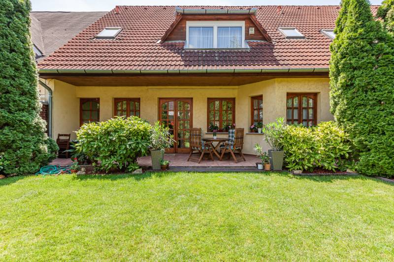 Napelemes, Madárcsicsergős Otthon a Madách-ban!Dunakeszi az északi agglomeráció központja, egy nyugodt, Duna-menti kertváros mely megújuló parti sétányával, kiváló iskoláival, folyamatos infrastrukturális és intézményi fejlesztéseivel az egyik legdinamikusabban fejlődő és szépülő hely a Dunakanyar kapujában.Itt, a város méltán kedvelt, kiválóan lokált területén, a Madách Lakópark tüneményes hangulatú házainak szomszédságában került eladósorba egy szép állapotú sorházi lakás.Csendes zsákutcában, barátságos lakóközösségű gondos porták mellett kapott helyet.A ház 97-es építésű, a kornak megfelelő -és akkor sokkal szigorúbban vett- építési szabványoknak megfelelően épült masszív alapozással, 30as Porotherm téglatestekből, Sofatherm hőszigetelő üvegezéssel ellátott romantikus osztott üveges nyílászárókkal, tetőtérben új ablakokkal, lapradiátoros fűtéssel melyet még GARANCIÁLIS, frissen beépített kondenzációs cirkókazán üzemeltet, pót-kéménnyel, ami lehetőséget biztosít kandalló vagy mázaskerámia cserépkályha telepítésére a nappaliba.Gondosan szigetelt födém és tetősík, - cserépfedéssel.Földszinten tágas, jól bútorozható így tárolóként is funkcionáló GARÁZS, frissen burkolt letisztult előszoba, étkező/hall, nagy méretű térben félig szeparált konyha kamrakapcsolattal, déli tájolású nappali, fürdőszoba, szeparált illemhely kaptak helyet. Az kertre nyíló terasz fedett, a kertrész bűbájos, hatalmas thujákkal, díszcserjékkel, konyhakerttel szolgálja a zavartalan pihenést. Aktív, modern nagycsaládnak ideális, pont akkora zöldterülettel aminek gondozása nem teher, de a hétvégi garden partyhoz elengedhetetlen!Emeleti szinten 3 hálószoba, nagy fürdőszoba, WC kézmosóval és közösségi tér található, amely tökéletes játszó, olvasó vagy tanulósaroknak, home office kialakítására, de könnyűszerrel nyerhetünk belőle még egy hálószobát. Gyönyörű tömörfa lépcsősor, gazdagon lakozott parketta és lambéria csempésznek otthonos, meleg hangulatot a helyiségekbe.Az emeletről még egy szint elérhető, mellyel abszolút tetőtérben 2 helyiséges lakrészt nyertek a padlástér beépítésével. Kiváló lehetőség kamasz gyermek elhelyezésére, xbox-szobának, movie room-nak, vagy ide is telepíthető kellemes környezetbe a dolgozószoba.A 3 éve telepített NAPELEMRENDSZER 4.55kW teljesítményű, a teljes ház áramellátását fedezi, és meg elektromos autó töltését is elbírná. Együttműködik a 3.5kW-os klímaegységekkel így a hűtést nyáron könnyedén megoldja, a teli időszakban pedig rásegít a hőszabályozásra.A nagy terek és kényelmes elrendezés lehetővé teszi kisebb átalakításokkal 2 generáció együttélésének kiszolgálására!Közelben: MINDEN, ami a hétköznapokhoz szükséges, kis és nagyobb élelmiszerbolt, zöldséges, cukrászda, több általános iskola, óvodák, uszoda, buszmegálló, vasútállomás (Nyugati PU 30perc)Jöjjön el, nézze meg, ha maximálisan ellátott területen keres Családjának bűbájos Otthont, ahol a kertben teljesen megszűnik a külvilág zaja, mégis karnyújtásnyira a Főváros!