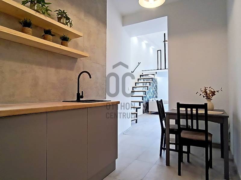 …és amit kínálok hozzá az pedig nem más, mint egy most a napokban elkészült, esztétikailag és műszakilag is minden apró részletében a legmagasabb minőségű anyagokkal, extra kivitelezéssel, luxus színvonalon történő felújítással és lakberendezéssel teljes körűen újjávarázsolt / újjáépített, összesen 35 m2 alapterületén egy hatalmas méretű (kb.23 m2-es) - déli fekvésének és az óriási üvegfelületű ablakainak hála, közvetlen napsütötte / rendkívül világos - amerikai konyhás étkezős nappalival - a 3,8 méteres belmagasságnak köszönhetően pedig még egy hálórésznek vagy akár dolgozónak is kiválóan használható 5 m2-es galériával - és ezen kívül természetesen egy minden igényt kielégítő fürdőszobával is büszkélkedő garzonlakás a IX. kerületi, Mester utcának - a Haller parkhoz közel eső - rehabilitációs részén. A szóban forgó ingatlant eredetileg egy nagyobb alapterületű (egy társasházi albetéten lévő) lakásból „egy újonnan kialakuló 3 lakásos projekt részeként” a másik kettő (szintén teljes körűen felújított) lakással egyetemben, hivatalos ügyvédi ingatlan használati megosztással alakították ki. Ez a lakás a másik két lakástól egy teljesen különálló bejárattal rendelkezik(!), így ezzel is a lehető legprivátabb szférát tudja majd biztosítani az új tulajdonosa számára!Fontos (!!!): Mivel ez az ingatlan ügyvédi használati megosztással rendelkezik és az 1 négyzetméterre eső vételár is felette van a 1,5 millió Ft-nak, ezért a szeptember elejétől életbe lépett, fix 3%-os kamattámogatott „Otthon Start” hitelkonstrukció, sajnos nem igényelhető meg rá !!!A lakás mind tulajdonjogilag, mind pedig az ingatlan használati (megosztási) joga szerint is teljesen rendezett, valamint teljes mértékben tehermentes, így a teljes vételár kifizetése után, természetesen azonnal birtokba is vehető !!!Műszaki és egyéb jellemzők:- A közös költség havonta 18.800,- Ft, amely a társasház felújítási alapját is tartalmazza- A lakás mivel az I. emeleten található és déli tájolással rendelkezik, így közvetlen napsütötte / hihetetlenül világos, ablakából kellemes „városi és zöldre néző” panorámát élvezhetünk.- Az ingatlan részét képezi majd a modern, beépített és gépesített konyhabútor, egyéb lakberendezési tárgyak / bútorok (pl.: kanapé, étkezőasztal, stb…)- A lakás természetesen teljes gépesítést is kap (pl.: Ariston Wellis Evo digitális villanybojler, energiatakarékos hűtő-fűtő klímaberendezés, norvég fűtőpanel, stb…)- A lakásban egyedi elektromos mérőóra rendszer került kialakításra! A jelenleg érvényben lévő ELMŰ-s szabályozás miatt, a három lakás közül a 2. számú lakás rendelkezik a fő villanyórával, ebben a (1. számú) lakásban pedig digitális almérő van. A már kialakított / kiépített vezetékelés, a későbbiekben természetesen lehetővé teszi majd a főmérőre történő egyszerű átkapcsolást / átállást(!)- A társasház részben felújított, külső homlokzatában viszont már teljesen újjávarázsolt / újszerű állapotú(!)- Egy kényelmes lift és egy belső kert is szolgálja az itt lakók kényelmét- A lakóközösség nagyon rendes és segítőkész. A közös képviselet / társasházkezelő cég a ház teljes körű megújulásának érdekében folyamatosan teszi a dolgát… - A társasház pinceszintjét, valamint közös villany-, víz-, és a gázhálózatot, valamint a kukatárolót is már felújították- Nem csak a társasház, hanem a környezete is a folyamatos megújulás és „rehabilitáció” alatt áll, ami hosszú távon, az ingatlanpiacon nem csak értékállóságot, de egyben gyors és pozitív értéknövekedést is jelent……és persze még sorolhatnám, de inkább éljen a lehetőséggel, jöjjön el és nézze meg személyesen, győződjön meg mindenről a saját szemével, kérdezzen bátran, beszélgessünk róla, tudjon meg mindent és szeressen bele !!! ;)Egyedülállóknak, életkezdőknek, újrakezdőknek, akár pároknak, de még az idősebb korosztálynak is egyaránt jó szívvel ajánlom! Ez a lakás a kiváló lokációjának, a rendkívül gyorsan és nagyon kedvező feltételekkel történő kiadhatóságának köszönhetően a befektetési céllal vásárlóknak is egyaránt kitűnő választás!Ha a leírtak és a látottak alapján felkeltettem az érdeklődését, megelőlegezett bizalmát előre is megköszönve, akár a hétvégén is várom szíves jelentkezését!