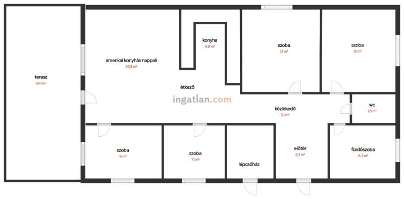 Csak nálunk!Otthon Start hitel is igényelhető!Csömör, Ibolya utca – családbarát ikerház lakás saját kerttelBudapest XVI. kerületének szomszédságában, Csömör csendes utcájában eladó egy 1990-ben épült, tégla ikerház egyik lakása.Az ingatlan nettó 89 m² lakótérrel rendelkezik, amelyhez tartozik egy 45 m²-es garázs és mosókonyha szint, valamint egy 24 m²-es terasz, amely közvetlenül a nappaliból nyílik.Belső elrendezése:-Előszoba – 5,13 m²-Közlekedő – 5,1 m²-Amerikai nappali + étkező – 26,8 m²-Konyha + étkező – 9,18 m²-Szoba – 9 m²-Szoba – 11,1 m²-Szoba – 12 m²-Szoba – 12 m²-Fürdő – 8,13 m²-WC – 1,85 m²-Terasz – 24,1 m²A fő falak 50 cm vastag téglából épültek szigetelés nincs,de nem indokolt,mert kiváló a hőtartása az ingatlannak.Műanyag nyílászárók 2 réteg üveg 5 légkamra. Gázkazán a mosókonyhában nem a lakótérben ,radiátoros fűtéssel.2 db inverteres klíma 320 m² saját kert, amely a ház mögött helyezkedik el, így nyugodt, intim hangulatot biztosít.Garázs + 3 felszíni autóbeálló.Iker szomszéd lakás az emeleten helyezkedik el nyugodt csendes család kiváló hangszigetelés ügyvédi megosztási szerződés van az ingatlanhoz.Hitelezhető az ingatlan!Az kertkapcsolatos lakás ideális választás lehet családok számára, akik Budapest közelségében, mégis nyugodt, kertvárosi környezetben keresnek otthont.Kiváló közlekedés.Jöjjön el nézze meg tegyen ajánlatot!I.V.