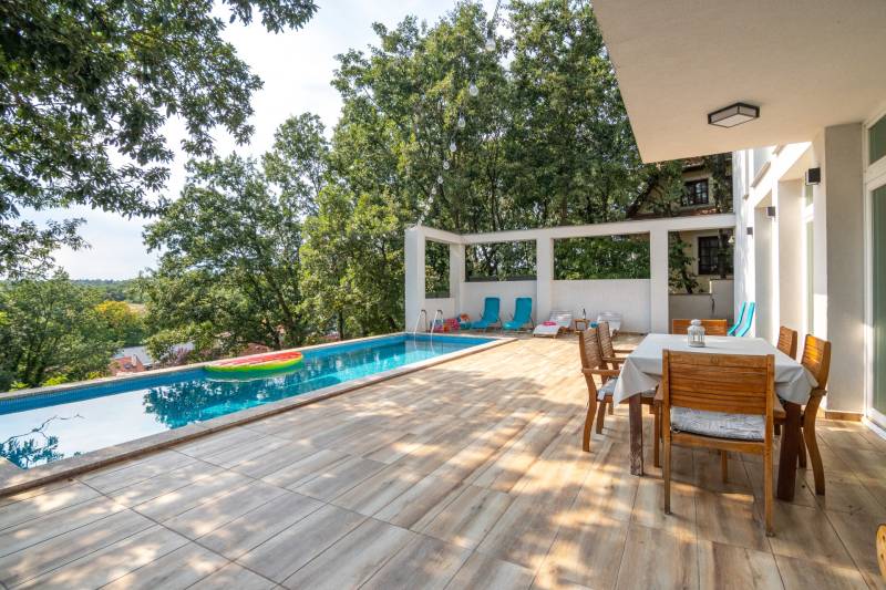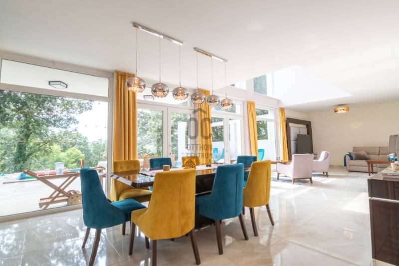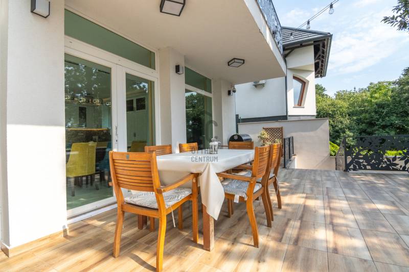 MIÉRT EZT VÁLASSZA?* Lélegzetelállító panoráma a környező tájra.* Hatalmas, 130 m²-es terasz- és erkélyegyüttes saját kültéri medencével.* Prémium minőségű, kompromisszumok nélküli építkezés.* Nagyvonalú terek: 220 m² nettó lakótér, kiváló elrendezéssel 4 szinten.* Ideális családoknak: Tágas közösségi terek és négy különnyíló hálószoba.* Zöldövezeti, presztízsértékű elhelyezkedés Diósdliget csendes részén.* 2 gépjármű számára kialakított beállási lehetőség a telken.* Praktikus tárolás és egyedi hangulat a saját borospincével.AZ INGATLANEz a Diósdligeten található, minden igényt kielégítő, 220 m² nettó (364 m² bruttó) lakóterületű családi ház a luxus és a kényelem tökéletes ötvözete. Az ingatlanhoz egy 300 m²-es, intim kert és egy összesen 130 m²-es terasz- és erkélyegyüttes tartozik, melynek központi eleme a saját medence.A ház négy szinten kínál átgondolt élettereket:* A földszint a társasági élet központja: itt található a 30 m²-es nappali, egy tágas, 30 m²-es konyha-étkező, valamint egy dolgozószoba. Innen nyílik a lenyűgöző, 126 m²-es panorámás terasz és a medencetér, amely tökéletes helyszíne családi és baráti összejöveteleknek.* Az első emeleten kapott helyet a főbejárat, egy tágas előszoba, valamint egy komplett szülői lakrész, mely saját hálószobából, gardróbból és fürdőszobából áll, teljes intimitást biztosítva.* A második emeleten további három, különnyíló hálószoba és egy fürdőszoba található, amely ideális a gyermekek vagy vendégek számára.* A szuterén szinten egy hangulatos borospince és a kazánház kapott helyet.A magas minőségű kivitelezés, a praktikus elrendezés és a páratlan panoráma teszi ezt az otthont igazán különlegessé.KÖRNYÉKDiósdliget a budapesti agglomeráció egyik legkeresettebb, legmagasabb presztízsű része. Csendes, biztonságos, zöldövezeti környezet jellemzi, kiváló levegővel. Az infrastruktúra fejlett, Budapest autóval és tömegközlekedéssel is könnyen és gyorsan elérhető. Ideális választás mindazoknak, akik a város közelségére és a természet nyugalmára egyaránt vágynak.MŰSZAKI ADATOK* Szerkezet: Magas minőségű építés, 15 cm-es külső hőszigeteléssel.* Nyílászárók: Modern, hőszigetelt műanyag ablakok és ajtók.* Fűtés: Gáz-cirkó, padlófűtéssel és radiátoros hőleadókkal kombinálva.* Hűtés: Kiépített klímarendszer.* Terasz és Erkély: Összesen 130 m².* Parkolás: 2 autó számára fedetlen gépkocsibeálló a telken belül.* Extrák: Kültéri medence, borospince.PARKOLÁS2 állásos fedetlen gépkocsi-beálló a saját telken belül.KIKNEK AJÁNLOTT?Tökéletes választás:* Nagyobb családoknak, akik tágas, jól szeparált, többgenerációs együttélésre is alkalmas élettereket keresnek.* Igényes vásárlóknak, akik egy reprezentatív, prémium minőségű és értékálló otthont szeretnének.* A szabadtéri élet kedvelőinek, akik kiélveznék a hatalmas, panorámás terasz és a saját medence nyújtotta lehetőségeket.Irányár: 279.000.000 Ft (kb. 711,000 EUR)Amennyiben az ingatlan felkeltette érdeklődését, keressen bizalommal, hogy további információkkal szolgálhassak és megszervezhessek egy személyes bemutatót.