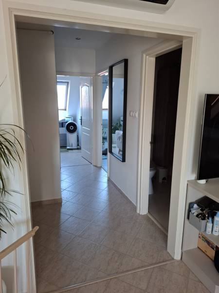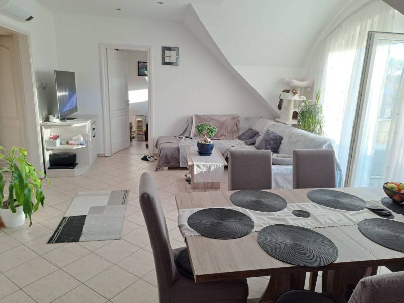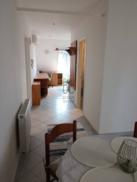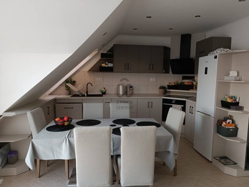 Az ingatlan Debrecen belvárosában, egy csendes, egyirányú utcában található. A társasház teljes felső szintjét csak ez a két lakás alkotja, melyek így sokoldalúan hasznosítható, különleges adottságúak. Összterületük bruttó 111 négyzetméter. A nagyobb lakás 79 négyzetméter, melybe egy 6 négyzetméteres erkély is beletartozik. A lakást egy tágas nappali-étkező, két szoba, továbbá egy kisebb, akár gardróbként, dolgozó-, vagy gyerekszobaként használható szoba, egy fürdőszoba-wc és egy külön wc alkotja. A nappaliból egy saját, igényes erkély nyílik. A lakásban 2022-2023-ban széleskörű felújítást hajtottunk végre. Minden beépített bútor és a beépített berendezések teljeskörű cseréje megtörtént. Újgenerációs Bosch beépített mosogatógép, sütő és indukciós tűzhely került beépítésre. Ezen felül új, huzatmentes hűtő-fűtő klíma és új kondenzációs kazán csere is a felújítás része volt. A lakás komplett fürdőszobája és a teljes szaniter és bútorzat is új. A hidegburkolatos helyiségek teljes egészében padlófűtöttek. A szobák melegburkolat cseréje szintén megtörtént, karc és nedvességálló minőségi vinyl padlózatot kaptak. A szobákban a fűtés radiátor által megoldott, a fürdőszobában padló- és radiátorfűtés egyaránt gondoskodik a fűtésről. A nappali erkélyablakának komplett cseréje 2023-ban megtörtént, szúnyoghálós bukó-nyíló ajtóval lett ellátva, a lakás többi, velux tetőtéri ablakát új velux hő és fényzáró rolóval láttuk el. A kisebb lakrész 32 négyzetméter, külön, önálló egységként, külön helyrajzi számmal ellátva funkcionál. Ideális dolgozó helyiségnek, egy személy vagy pár saját külön bejáratú lakásának, vendégek fogadására, de azonnali kiadásra is. Külön áram, víz és gáz órák tartoznak hozzá. Saját gázkazánja biztosítja a hőt és melegvizet. Ez a lakás szintén klimatizált, egy szoba, egy fürdőszoba-wc és egy konyha alkotja. A nagyon praktikus elrendezésnek köszönhetően akár két ember háztartásvezetés mellett is életvitelszerűen használhatja. Televízió, internet, mosógép, hűtőszekrény és főzési lehetőség is azonnal rendelkezésre áll. Mindkét lakás teljesen bútorozottan eladó. A két lakás közötti 11 négyzetméteres közlekedő rész szintén a tulajdonos rendelkezésére áll saját használatra. A társasházhoz egy közös, igényesen rendben tartott belső kert, fedett bicikli beálló és saját garázsok tartoznak. A lakás mellé opcionálisan megvásárolható a saját, társasház alatti garázs egy önálló 18 négyzetméteres automata kapus beállóval és egy abból nyíló külön tárolóhellyel. A garázs is saját villanyórával, áramforrással, világítással rendelkezik, bútorozott. A lakások elhelyezkedése kiváló. Gyalogosan, biciklivel 5-10 perc a Piac utca, Nagytemplom, a villamos és buszmegállók is a közelben.A lakások a leírtaknak megfelelően több célra hasznosíthatóak. Jelenlegi állapotukban tökéletes belvárosi ingatlanok, emellett ideális lehet akár több generáció számára, külön lakrészre vágyó családtagok esetén, de befektetési célra is, akár két berendezett, kiadható belvárosi ingatlanként bármilyen beruházás végrehajtása nélkül.A lakások egyedi kialakítása okán az Otthon Start Program konstrukciója is igénybe vehető. További részletekért érdeklődjön bármikor.A megjelölt ár a két lakrészre vonatkozik, a 18 négyzetméteres garázs opcionálisan megvásárolható.