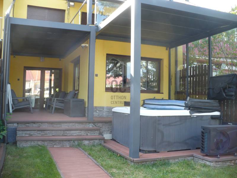 Debrecen frekventált övezetében kínálunk egy különleges lehetőséget!A Malompark közelében eladó egy modern, kiváló minőségben felújítottönálló családi ház, zárt sorú beépítéssel.Nappali+ 2 hálószoba, a hozzá tartozó 195 nm -es telekkel, 2 fűtött garázzsal.Az épület felújítása során :- az épület külső szigetelést kapott- színezett műanyag ablakok és ajtók kerültek beépítésre, elektromos alu redőnyökkel szerelve- az épület fűtése és hűtése hőszivattyúval történik- nagy méretű terasz, erkély, - 3 db pergola, amely kb. 40 nm-es- minőségi konyhabútor, beépített gépekkel- a fürdőszobában masszázskád, a kertben jakuzziAz épület energiaellátását a felszerelt SALDO elszámolású 10 KW teljesítményű napelem biztosítja,így a fenntartási költsége minimális.Az ingatlan minden beépített részletében kiváló minőségű!Tehermentes, rövid határidővel birtokba vehető!