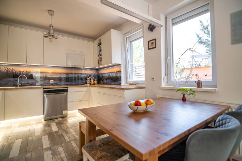 Megvételre kínálunk egy jó elosztású, jó állapotú kertes ikerház hátsó részét Újpéteritelepen!Az ingatlanról:✔️ 113 m2-es, nappali+ 4 hálószobás (Tulajdonilapon 96 m2-es, mert a garázst végül szobává alakították de így összesen 113 m2)✔️ földszinten: nappali-étkező-konyha, előszoba, fürdőszoba, 1 szoba.✔️ fedett terasz 12 m2✔️ Kert: 328 m2✔️ emeleten: 3 szoba, fürdőszoba, közlekedő.✔️ minden szoba külön nyíló✔️ ablakok műanyagok redőnnyel és szúnyoghálóval.✔️ nappali keleti tájolású✔️ fűtése: kombi cirkóval működik, mindenhol radiátorok illetve a földszinten a szobán kívűl mindenhol padlófűtésA ház 2016-ban épült 30 cm vastag téglából.A betoncserép tetőn elhelyezett napelemek segítik az áramszámla alacsonyan tartását.10 cm szigetelés.Az ingatlanhoz tartozik egy kerti tároló is.Jogilag társasház. Parkolni telken belül 3 autóval lehetséges illetve a ház előtt.Közelben minden megtalálható ami fontos a mindennapokhoz!✔️ CSOK+ és sima normál banki hitelre is alkalmas ingatlan!Ha felkeltette érdeklődésedet keress nyugodtan a hét bármelyik napján!