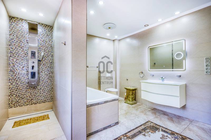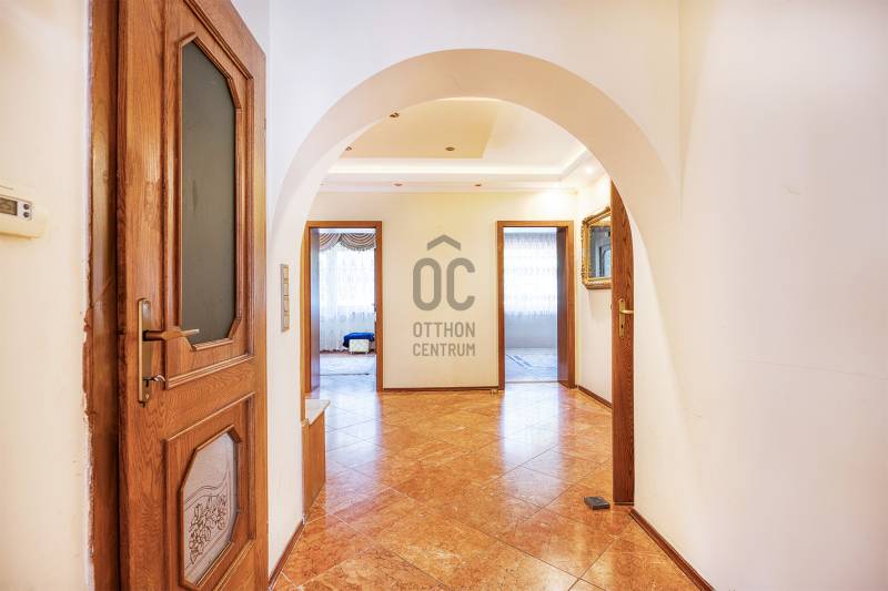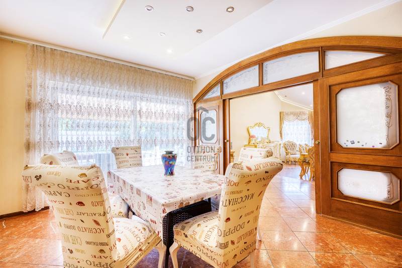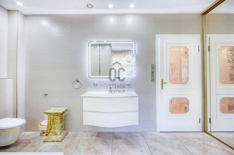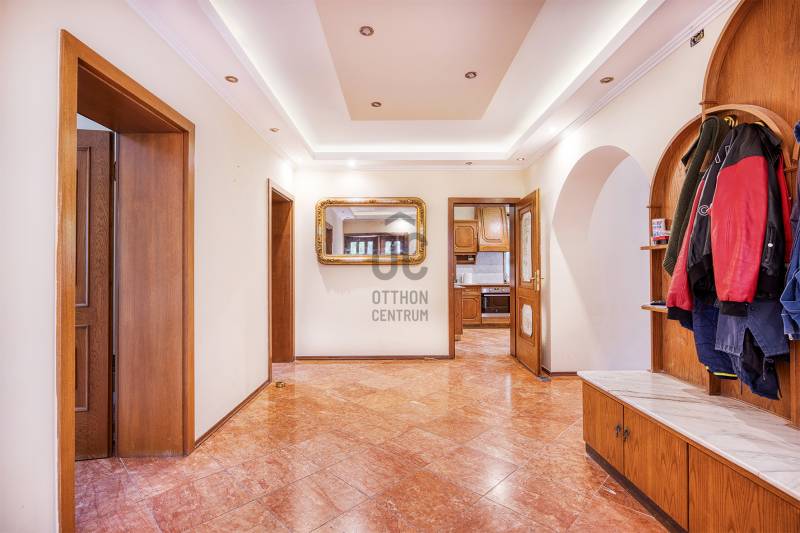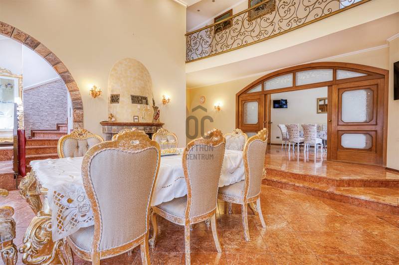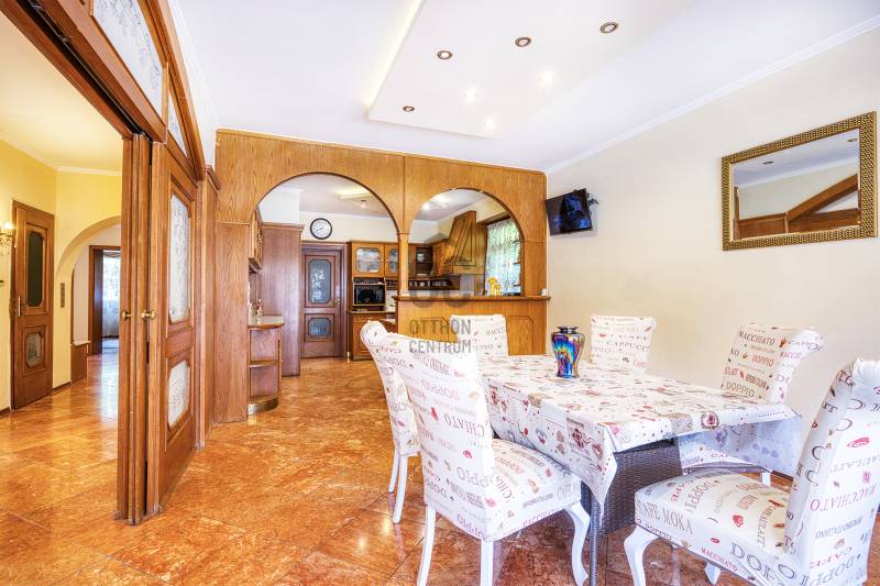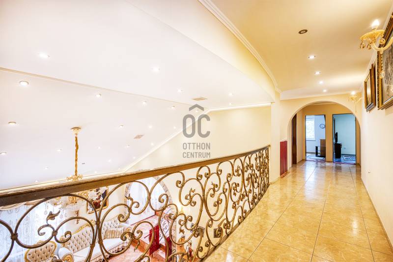 A 810 m2-es telken található, 450 m2-es, belső kétszintes, kiváló elosztású családi ház remek választás nagycsaládosoknak vagy akár kétgenerációs otthonnak.Az ingatlanba belépve tágas előszoba érkezünk mindennek van helye innen nyílik egy balra egy hálószoba, és hatalmas fürdőszoba.Jobbra található lakás szíve, egy csodálatosan elegáns nappali, ahol a 5 méteres, a belmagasság kandallóval hatalmas térrel.A konyha és az étkező 28 nm-es.A felső szinten 3 hálószoba 2 fürdőszoba és egy gardróbkerült kialakításra.