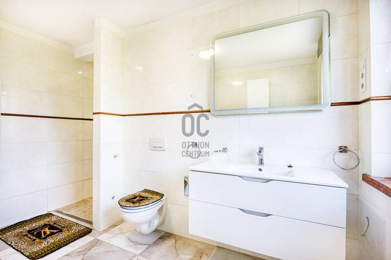 Főbb jellemzők:- 4 tágas szoba, - 1 gardrób szoba- 3 fürdőszoba,- konyha, speiz, - Fedett terasz az udvar felé, erkély kertre nyílóan- Központi, gázcirkós fűtés, minden helyiségben padlófűtés- Törölközőszárítós radiátorok a fürdőszobákban- Klímaberendezés modern, energiatakarékos hűtéshez- Riasztórendszer kiépítve- Körbejárható ház, tágas udvar, automata öntözőrendszerrel nagy kert- 3 autós, tágas garázs - Nyitott terasz & medenceA ház műszakilag és építészetileg is jó állapotú, minimális átalakítással akár két önálló lakásként is használható.Gyors időpont-egyeztetés lehetséges személyes megtekintéshez, főként napközben, világos órákban ajánlott.További információért kérem, vegye fel velem a kapcsolatot üzenetben vagy telefonon!