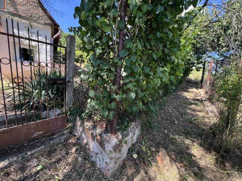 Pécs egyik legkedveltebb részén, Patacson, a Galagonya dűlőben eladó nyaraló telekkel!!!Patacson, a Galagonya dűlő tetején, közvetlenül a Nyugat-Mecsek tájvédelmi körzet erdője mellett eladó 733 m2-es zártkerti telek. Kis gazdasági épület található rajta, gyönyörű kilátással. A tégla épület alul 28 m2-es, felső szinten 20 nm, engedélyeztetve gazdasági épületként van. 15 perc sétára található az újmecsekaljai buszvégállomástól. Romantikus környezet, gyönyörű kilátással a városra.A gázvezeték az utcán, a villany be van vezetve. Az utcában már több családi ház felépült.Az ingatlan zártkert, tehát kifüggesztéses folyamat vonatkozik rá, ami nagyjából 3-5hónapot vesz igénybe és két lépésből áll a helyi jegyző és földbizottság bevonásával.Jellemzőit tekintve a tulajdoni lapon művelési ág / kivett megnevezés /6-os minőségi osztályba sorolt szőlő és gazdasági épület vízmerítési, kúthasználati és úthasználati szolgalmi joggal. A vízrendszer kiépítése megkezdődött, házi vízművel ciszternából megoldható a leendő tulajdonos által, vagy kút fúrásával biztosítható a ház vízellátása.A szennyvíz kialakítása az új tulajdonosra vár, ameddig használatban állt a ház, komposztWC oldotta meg ezt a feladatot.A nyílászárók fa keretesek, a felső szinten hőszigetelt ablak került beépítésre.A tető cseréje az új tulajdonosra vár.A présház teljes villanyrendszere korszerűsítésen esett át. A fűtés kapcsán klíma beszerelése, vagy fa tüzelésű kályha kerülhet szóba.A telek gyalogosan közelíthető meg szolgalmi úton, a felvezető út minősége nem a legjobb, de autóval fel lehet menni, azonban parkoló nem áll rendelkezésre. A fenti telek tulajdonosa utat tervez építtetni pár éven belül a ház elé, azonban ennek használati jogával kapcsolatos tárgyalása a következő tulajdonosra vár.A felfelé vezető út meredek, gyalogosan a 27-es busz végállomásától 15percen belül elérhető.Aldi, Tesco és egyéb bevásárlási lehetőség 15-20perc sétára vagy a 27-es busszal szintén könnyen megközelíthető. Pécs belvárosa tömegközlekedéssel 25perc alatt elérhető.A háznak két szintje használható jelenleg, de van egy tetőtéri rész is, ahol szintén hálószoba alakítható ki. Présház révén a szigetelés megoldásra vár. Az alsó szinten a bejáraton bejutva a nappali, balra a leendő konyha és mosdó kerülhet kialakításra, míg a fenti szinten egy terasz és egy beépített szekrénnyel rendelkező háló van.Nyári bográcsozások kellemes helyszíne lehet a horvát hegyekre nyíló panorámával rendelkező nyugalom szigete. Vendégház is kialakítható a házból.Ha felkeltettem az érdeklődését, hívjon, nézzük meg!Teljes körű pénzügyi megoldások ügyintézése díjmentesen:* Bankfüggetlen hitelcenterünk díjmentesen versenyezteti minden bank és hitelintézet ajánlatát.* Önnek nincs más dolga, mint beszélgetni munkatársunkkal, majd a megversenyeztetett ajánlatokból kiválasztani a hosszútávon is a legmegfelelőbb konstrukciót.* Szakértőnk több mint 20 éves szakmai tapasztalattal és egyedi igényekre szabott, fogyasztóbarát lakáshitelekkel, babaváró hitellel, teljes körű CSOK ügyintézéssel várja Önt.* Előre egyeztetett időpontban.