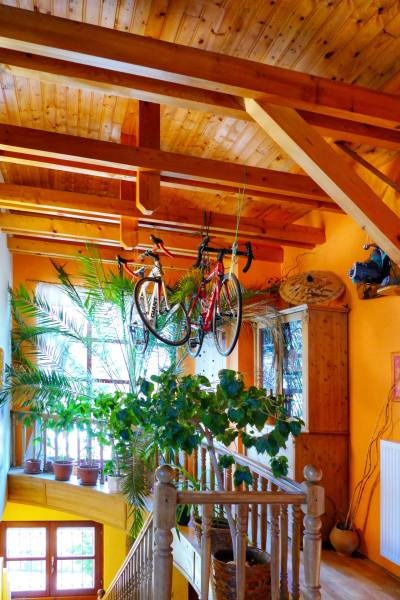 CSOBÁNKA csendes zsák utcájában, panorámás családi ház, egyik lakása (ikerház) része eladóA családi ház ügyvéd általi megosztással két külön lakásra osztható- 2005-ben épült- MEDITERRÁN hangulatú, otthonos - szigetelt-tégla építésű- belső kétszintes, tetőtéri-keleti fekvésű- bruttó 154,28 nm-40 nm tágas nappali, kandallóval, bel magassága 4 méter , látszó gerendákkal , különleges hangulattal- hegyekre néző , panorámás nappali, nagy ablak felületekkel, terasszal- világos tágas konyha étkezővel, egyedileg gyártott fa bútorokkal - három nagy szoba - nagy dupla mosdós , sarokkádas fürdőszoba , épített bútorral - gardrób szoba- fűtés gázcirkóval , valamint a nappaliban kandallóval lehetséges- egyéni megrendelésre gyártott fa nyílászárók, dupla üveggel- összközműves, saját mérőórákkal- önálló garázs a telek első részében, mely egy nagyobb, vagy két kisebb autó beállására alkalmas ( tégla építésű, jól szigetelt- saját önálló kert is tartozik a lakáshoz kb 200 nm- teraszos kialakítású a kert,- fedett terasz - az utca aszfaltos, a lakáshoz díszkő burkolaton keresztül sétálhatunk fel.- a kert rendezett , gyönyörű , fák , örökzöldek , cserjék , bokrok sokasága , valamint virágzó növények színesítik Tömegközlekedés, óvoda iskola, bevásárlási lehetőség séta távolságban. Sportolási lehetőség , túrázás, kerékpározás , kirándulás , kedvelt túra útvonalakon .