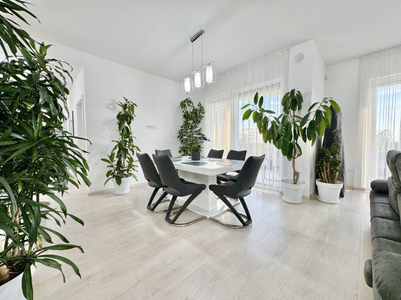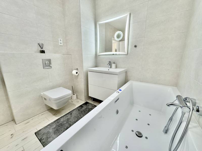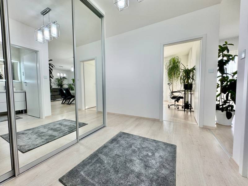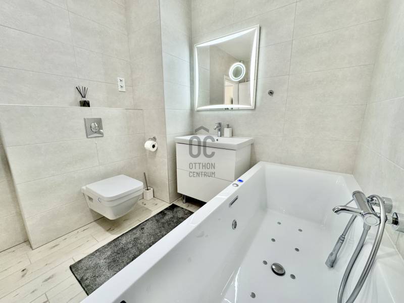 Prémium újépítésű lakás, dupla erkéllyel a XIX. kerületben. Eladó ez a minden szempontból átgondolt, legjobb minőségben kivitelezett 3 szobás lakás. (Akár visszabérléssel)Fontosabb információk: • 2024 átadás• 103m2 , 3 szoba• 15,43 m²-es terasz és egy 4,26 m²-es erkély• geotermikus fűtésrendszer, mennyezeti fűtés és hűtés• padlófűtés az előtérben, wc és fürdőszobában• okos-otthon teljesen kiépítve, lentebb részletezve• magas minőségű nyílászárók• szívesen visszabérelné a tulajdonos• tehermentes tulajdoni lap.A hirdetett ár tartalmazza:• teljes mesh WiFi rendszer;• pezsgőfürdő funkcióval és színterápiával ellátott fürdőkád;• okos konnektorok és kapcsolók;• szőnyegek és függönyök;• tartalék burkolatok: csempe, padlócsempe, vízálló padlóOkos-otthon rendszer lehetővé teszi az alábbi funkciók távoli, mobiltelefonos vezérlését is:• beépített riasztórendszer;• fűtés és hűtés;• állítható fényerejű LED világítás;• elektromos, motoros redőnyök;• okos kilinccsel felszerelt bejárati ajtó;• főzőlap, sütő, mosogatógép, mosógép és szárítógép.Emellett a rendszer jelzéseket küld a mobiltelefonra behatolás, vízszivárgás vagy füstérzékelés esetén.Kérdés, vagy egyéb információ esetén keressen bizalommal!