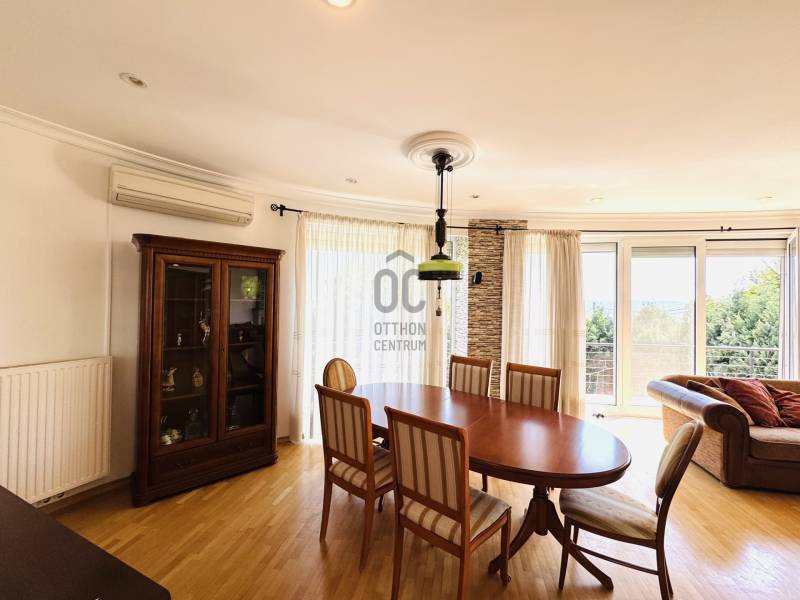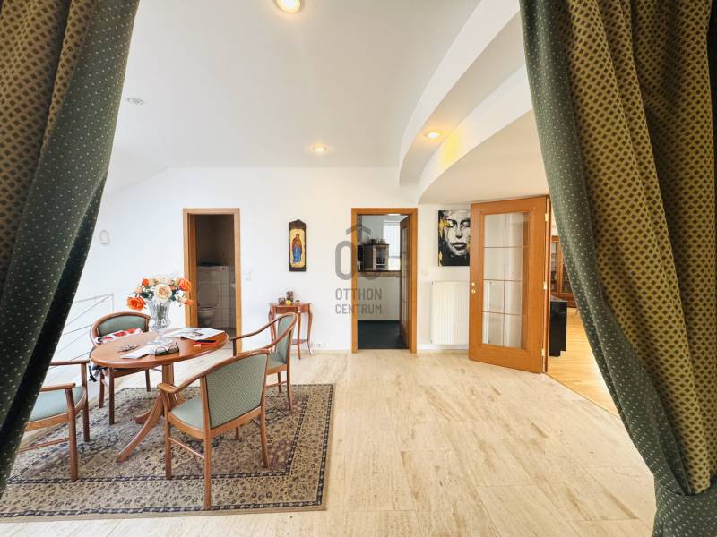 Képzelje el, hogy minden reggel a természet ölelésében, a város zaja felett ébred, miközben körülöleli a budaörsi hegyek látványa. Ez a birtok nem csupán egy ingatlan – egy élettér, ahol a nyugalom és a modern luxus találkozik.A főépület – a nagyvonalú családi otthon (485 m²)Egy különleges, Dr. Kuba Gellért által tervezett, ökologikus villa, amelyet úgy álmodtak meg, hogy hosszú távon kényelmet, fenntarthatóságot és eleganciát nyújtson.Kikapcsolódás itthon: belső medence és szauna gondoskodik a pihenésről.Energiatudatos megoldások:napkollektor, frisslevegő-ellátás, gravitációs légfűtés – mindez alacsony rezsit és tiszta levegőt biztosít.Tágas terek, fényárban: a hatalmas nappaliban a kandalló melege és a körpanoráma egyszerre varázsolja otthonossá az estéket.Privát szféra: 5 különálló hálószoba, mind saját fürdőszobával és gardróbbal.Autók szerelmeseinek: 4-5 férőhelyes teremgarázs, fordítókoronggal a könnyed kiállásért.A vendégház – egy kis külön világ (100 m²)A birtok része egy barátságos, önálló vendégház is, amely ideális szülők, felnőtt gyermekek vagy vendégek számára.* Világos, amerikai konyhás nappali* Kényelmes hálószoba és fürdő* Panorámás terasz nyári konyhával – tökéletes hely baráti összejövetelekhez. Miért különleges ez a birtok?* Mert itt valóban két házat kap egy áráért – többgenerációs együttélésre, vendégháznak vagy akár munkára is ideális.* Mert a tervezés és a kivitelezés során a környezettudatosság és az egészséges élettér volt az elsődleges szempont.* Mert a csend, a panoráma és a természetközelség olyan életminőséget kínál, amit kevés budapesti környéki ingatlan tud nyújtani.Ez az otthon nem mindenkinek szól. De ha Ön értékeli az egyediséget**, a fenntartható megoldásokat, és szeretne egy saját világot magának és családjának a város szomszédságában, akkor ez az ingatlan pont Önre vár.