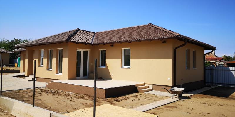 Egyszintes családi ház rendkívül magas műszaki tartalommal! Gyál központjához közel, csendes, új építésű, 123 m2-es, nappali + 4 szobás, 2 fürdőszobás, dél-nyugati tájolású családi ház 640 m2-es telekrésszel 2026 nyári eleji átadással kulcsrakészen eladó. Csúcstechnológiájú Daikin hőszivattyú biztosítja a padlófűtést, a mennyezet hűtést-fűtést és a meleg vizet. A nappaliban egy inverteres hűtő-fűtő klíma is kialakításra kerül. Elektromos alumínium redőnyök szúnyoghálóval. Riasztó. Elektromos kapu, garázsajtó. H tarifa. 1x32A és 3x20A. Referenciaház megtekinthető. A fotókon egy rövidesen átadásra kerülő ingatlan látható. Az ingatlant csak irodánk kínálatában találja.Összközműves aszfaltozott, széles utca. Közelben iskola, óvoda, szolgáltató egységek, üzletek. Jó tömegközlekedés.Vasbeton sávalap, 30 cm-es Porotherm tégla főfalak 12 cm-es dryvit hőszigeteléssel. Műanyag homlokzati nyílászárók 3 rétegű üveggel. Fa födém 30 cm. kőzetgyapot hőszigeteléssel. Bramac cserép héjalás. Festés, burkolás, szaniterek, belső ajtók választhatók. A hideg, meleg burkolatokat 6000 Ft./m2 árig, a belső ajtókat 75000 Ft./db. árig tartalmazza a vételár. Mosdó csaptelep: 25 ezer Ft., mosdó: 25. ezer Ft., Kádtöltő csaptelep: 40 ezer Ft., Fürdőkád: 100 ezer Ft., Zuhany csaptelep szett: 40 ezer Ft. Zuhanykabin épített zuhanyhoz: 200 ezer Ft., WC csésze: 25 ezer Ft. (beépített tartályos wc-k kerülnek kialakításra)Magyarország piacvezető hitelközvetítője által egyedi kamatkedvezményekkel és bankfüggetlen, díjmentes hitelügyintézéssel is segítjük vásárlását. Hívjon bizalommal!