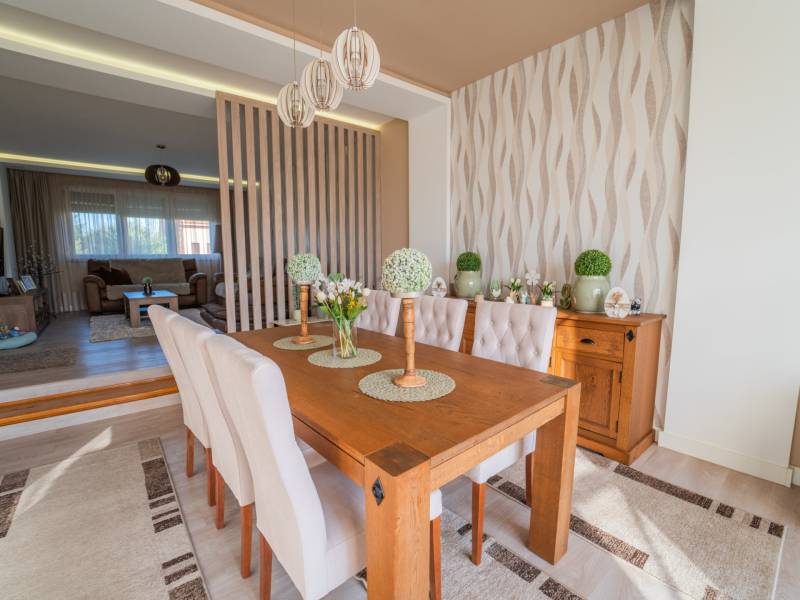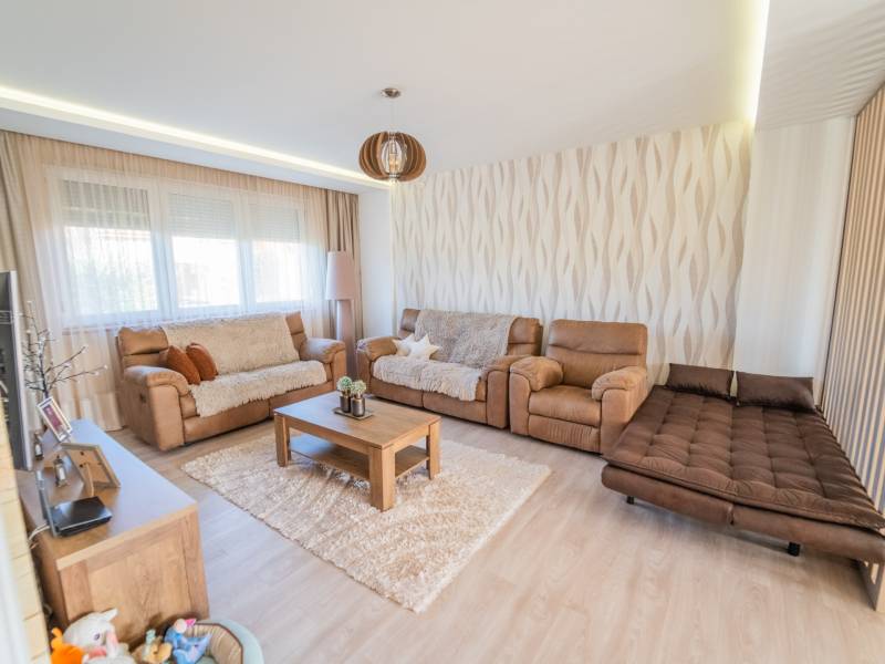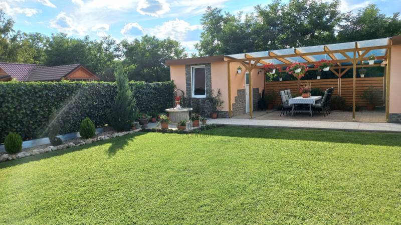 Balmazújváros abszolút belvárosi részén, a termál fürdő közelében, kifogástan állapotú családi ház eladó!Központi elhelyezkedésének köszönhetően, néhány perc séta távolságra, üzletek ( pl.: Lidl, Penny) , oktatási és egészségügyi intézmények, posta, stb..Dinamikusan fejlődő tömegközlekedés jellemzi a várost, busz és vasút állomás néhány száz méteren belül elérhető.A családi ház paraméterei:- 2000-ben épült tégla falakkal,10 cm-es szigeteléssel kiegészítve és cserép tetővel.- 418 nm - telken, nettó, hasznos 112,27 nm alapterületű két szintes épület- 2023 ban a földszinti rész jelentős felújjításon esett át, új burkolatokat, új megjelenést és csodás beépített szekrényeket kapott.- konyha- étkező ( közvetlen terasz kapcsolattal) és nappali egy légtérben került kialakításra a földszinten, ahol még fürdőszoba, kölön WC, kamra és előszoba található- az emeleti rész 3 hálószoba, gardrob, közlekedő és fürdőszoba elosztású- gáz-cirkó kazán biztosítja a használati meleg vizet és az otthon melegét padlófűtésen keresztül- 2 db hűtő - fűtő klíma került felszerelésre az elmúlt években.- minőségi hőszigetelt műanyag nyílászárók teszik világossá a teret- tágas világos, ideális térkihasználás jellemzi- elszeparált, gyönyörűen parkosított kert sok lehetőséget kínál a kinti időtöltéshez- a garázs 19,29 nm-s melyhez egy 8,29 nm-s tároló tartozikAz ingatlanról teljes körű videó felvétel készült, a megtekintése érdekében weboldalunkon keresse a H506183 regisztrációs számon vagy keressen telefonon közvetlenül.A városból Debrecen gyorsan, dugómentesen megközelíthető.Azoknak akik szeretik a kertvárosi, barátságos környezetet, és fontos a belváros közelsége azoknak ez egy remek választás.Hívjon, foglaljon időpontot a megtekintéshez!Debrecen, Balmazújváros, központ, fürdő, kert, park, panoráma, zöld, ház, nappali+ 3 szoba, gardrob