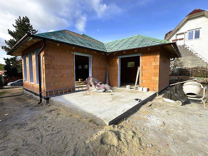 SZENTENDRÉN PISMÁNY ALJÁBAN ELADÓ EGY ÚJÉPÍTÉSŰ FÖLDSZINTES ÖNÁLLÓ CSALÁDI HÁZ!KÖRNYÉK: Szentendre kedvelt részén, Pismány aljában helyezkedik el, egy központi, de mégis csendes helyen. A buszmegálló 6 perc sétára található, ahonnan könnyedén megközelíthető a belváros, a H5-ös HÉV, és még Budapest is.A HÁZ JELLEMZŐI:A várható átadás 2026. 1-2. negyedév lesz.-Hasznos alapterület: 123 nm.-Telek: 535 nm.-Az ingatlan 30 cm-es POROTHERM téglából épül, és 12 cm-es EPS szigetelést kap.-Plusz egy 21,13 nm-es terasz.-Plusz egy 4 nm-es kamra.-A nyílászárók 3 rétegű műanyagból vannak, és thermo üvegezésűek.-A fűtésért hőszivattyú felel. A hőleadók radiátorok.-Fagerendás födém.-A tetőt kerámia cserép fedi, alatta pedig 25 cm-es kőzetgyapot szigetelés található.-Összközműves.VÁLASZTHATÓ ANYAGOK/ÁRAK:-Hideg,meleg burkolat (csempe fürdőknél ajtó magasságig burkolva 210cm)6.000ft/m2.-Beltéri ajtók kompletten 70.000ft/db.-Mosdók 50.000ft/db.-WC kompletten 50.000ft/db.-Kád/zuhanykabin 70.000ft/db.-Csaptelepek 20.000ft/db.-Törölközős szárító radiátor 40.000ft/db.-Fehér műanyag Párkányok kívül-belül.-Viakolor 50m2 sima standard szürke viakolorkővel.-Ház körül 60cm szélesen beton járda.-Kapcsolók dugaly 70db 1000ft/db.-2x glett,festés.-Estric beton szálerősítés.-2klíma kiállás.FINANSZÍROZÁS:Tehermentes, banki finanszírozással is megvásárolható, melyben irodánk ingyenes tanácsadással áll rendelkezésükre!VEVŐINK RÉSZÉRE A KÖZVETÍTÉS DÍJTALAN!A hirdetésben szereplő adatok tájékoztató jellegűek.