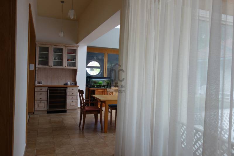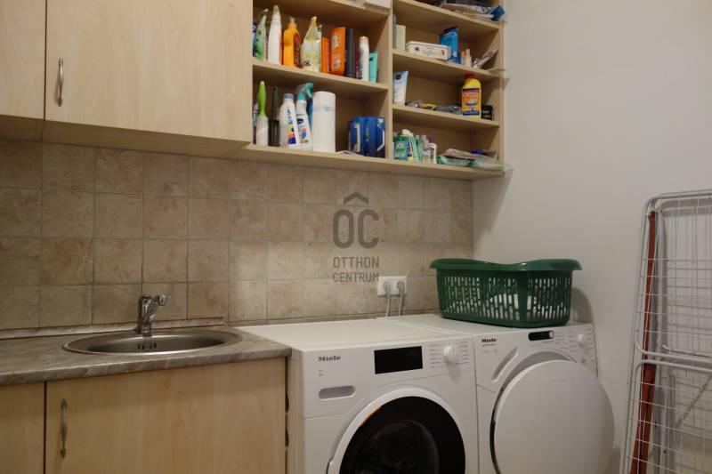 Mogyoródon a méltán kedvelt Szent Jakab lakóparkban eladósorba került egy gyönyörű családi ház. A dupla telken elhelyezkedő ingatlan 2003-ban épült.A körbejárható egy szintes házban nagy terekkel rendelkező otthon kiváló lehet nagyobb családoknak vagy akár több generáció összeköltözésére is. A közel 300nm-s házat 6 szobával, három fürdőszobával tulajdonosai a Feng Shui elvei szerint álmodtak meg. Ennek és az építészeti tervezésnek köszönhetően rendkívül jó energiája vana háznak. Nagy terek, tágas szobák és kényelmes - praktikus kialakítása minden korosztály számára a kényelmet szolgálja. Például mosókonyha, dolgozószoba,gardrobeszoba, fitnesszrészleg és a már beépített tetőteret tárolónak használva. Ez utóbbi tovább fejleszthető, lakótérként használható. Az igen tágas télikertjelenleg étkező-közösségi tér, tetőablakai nyithatóak. A házban akár két különálló lakrész is kialakítható, külön bejárattal. Ennek előkészítése megtörtént, ehhez csupán egy fal megépítése szükséges. Energetikailag kítűnő, besorolása EE, öko jellegű energiafelhasználással. Fűtését a két évvel ezelőtt telepített hőszivattyú, melegvízellátását egy kombi gázkazán biztosítja, mely fűtésre is alkalmas. A házban 4 db klíma található, a hidegburkolatos helyiségekben padlófűtés van. A gyönyörű ősfás nagy telek-kert kiválóan alkalmas családi összejövetelek megrendezésére és kertészkedésre egyaránt. Számos gyümölcsfa, kerti tó és grillező, illetve kemence a szaletli alatt, minden igényt kielégít. A kertben öntözőrendszer és egy kerti tó is kialakításra került. Egy nagyon helyes borospince is helyet kapott a kertben, ahol a család férfitagjai barátokkal elvonulhatnak. Az épület U alakú kialakításával közrefogott terasz és a kert szélvédett, napos. A két állásos garázs tágas, felette tároló kapott helyet. A lakópark nyugalmát őrző-védő szolgálat vigyázza. Nívóját beléptető rendszer és portaszolgálat emeli. A lakópark fenntartása mint közösköltség 25eFt havonta.Aki itt él, csendes, nyugodt zöld környezetben erdő mellett egy másfajta életminőséget tudhat a magáénak. Rendkívül jó a megközelítése, autóval 20-25 perc, hévvel 35perc alatt érhetjük el az Őrs Vezért terét. Tulajdonosai nagyon szeretnek itt élni, gyerekek kirepülése hozatta meg velük az eladás melletti döntést. Várom hívását, egy élmény lesz a bemutató is!