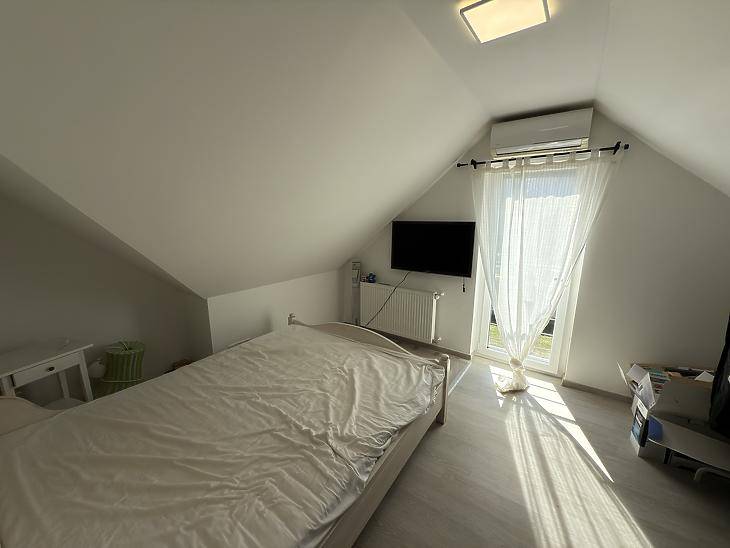 SZENTENDRÉN PISMÁNY ALJÁBAN ELADÓ EGY ZÁRT LAKÓPARKI LAKÁS!KÖRNYÉK:Az ingatlan Szentendre kedvelt részén, Pismány aljában helyezkedik el, egy központi, mégis csendes, nyugodt környéken. A buszmegálló 8 perc sétára található, ahonnan könnyedén elérhető a belváros, a H5-ös Hév, és még Budapest is. A lakópark közelében található élelmiszerbolt, gyógyszertár, dohánybolt és óvoda. A gyerekeknek 10 perc sétára található játszótér is.A HÁZ JELLEMZŐI:A képek rövid időn belül elkészítésre kerülnek.• Hasznos alapterület: 75 nm. (bruttó alapterület: 115nm). A tetőri lakás parapet magassága emelve van. A helyiségek kényelmesen vannak kialakítva. Elosztása: 3 hálószoba+ nappali + 2 fürdőszoba.• A lakópark 2018-ban épült 38 cm-es POROTHERM téglából. A homlokzat 15 cm-es Dryvit szigetelést kapott. A tetőt Bramac betoncserép fedi, alatta pedig 25 cm-es kőzetgyapottal van szigetelve.• A társasház egy zárt lakóparkban helyezkedik el, ami elektromos úszókapukkal van elzárva. A lépcsőházban 6 lakás van. A legfelső emeleten a lakásnak nincsen szomszédja. • A fűtést és a meleg vízellátást egy kombi gáz cirkó biztosítja.• A tetőtéri ablakok fából vannak, a többi helyiségben thermo üveges műanyag nyílászárók vannak. • A lakásban 2 db inverteres klíma került beszerelésre.• A lakáshoz tartozik 1 db kültéri kocsibeálló is.• A tulajdonjogot cég birtokolja. Az ingatlan rövid időn belül birtokba vehető!FINANSZÍROZÁS:Tehermentes, banki finanszírozással is megvásárolható, melyben irodánk ingyenes tanácsadással áll rendelkezésükre! VEVŐINK RÉSZÉRE A KÖZVETÍTÉS DÍJTALAN! A hirdetésben szereplő adatok tájékoztató jellegűek!