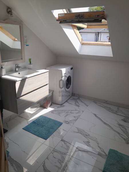 Piliscsaba, GARANCSLIGET lakópark egyik házában, gyönyörű panorámával rendelkező, tágas 3 szobás lakást kínálunk eladásra .A TELEK : - 1144 nm, - teraszos kialakítású- Öt részre lett osztva a tulajdonos társak között Az Ingatlan: - A ház 2022-ben került átadásra - 5 lakás található a házban - Tulajdoni lap szerint \" kivett lakóház és udvar\" - ebből az emeleten 2/8 rész eladó,- A lakás egy osztatlan közös tulajdonban lévő, épületben helyezkedik el, mely a használati megosztás szerint( mosókonyha, rekreációs helyiség, szárító és tárolónak van megnevezve.) - - Az eladó saját tulajdona a 2/8 rész ( 80 nm lakás) - Világos, egész nap napfényben úszó lakás- panoráma a Pilisi hegységre, Álomvölgyre- két nagy hálószoba, amerikai konyhás nappali, közlekedő és egy fürdőszoba WC-vel lett kialakítva-BRUTTÓ ALAPTERÜLET 80 NM -Hűtő-fűtő klíma kiépítve, beszerelve.-Műanyag nyílászárók , a VELUX tetőtéri ablak fényzáró rolóval lett felszerelve.- padlófűtés az egész lakásban- zárt lépcsőház -A lakás rezsi költsége alacsony.- közműveket almérők segítségével fizetik meg a tulajdonosok.- Közös költség 7000 Ft- rezsi költség : 18 000 Ft A LAKÁSHOZ TARTOZIK: - egy saját használatú füves kert rész kb. 100nm - a ház oldalában egy kisebb terasz - egy autó beálló a kertben Mindent szabályoz az ügyvéd általi használati megosztás !