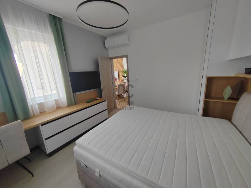 Azonnal költözhető, teljesen berendezett nappali + 2 szobás lakás kiadó magas minőségű kivitelben és modern berendezési tárgyakkal, 7 lakásos társasházban.Ide csak a bőröndjét kell behúzni!Főbb jellemzők:- Új építésű, 1. emeleti lakás erkéllyel- Teljesen berendezett és gépesített, stílusos enteriőr - Hőszivattyús padlófűtés → alacsony rezsi, fenntartható megoldás- Klimatizált minden évszakra- Ingyenes kocsibeálló a bérlők részéreH tarifás áram igényelhető a még kedvezőbb költségekhez!A bérleti díj tartalmazza:- biztosítás- internet és TV szolgáltatás- nincs közösköltségFeltételek:- 3 havi kaució szükséges- minimum egy éves határozott idejű szerződés- azonnal költözhetőEz a lakás ideális választás azoknak, akik egy modern, kényelmes és költséghatékony otthonra vágynak, ahol minden adott a nyugodt, gondtalan mindennapokhoz.