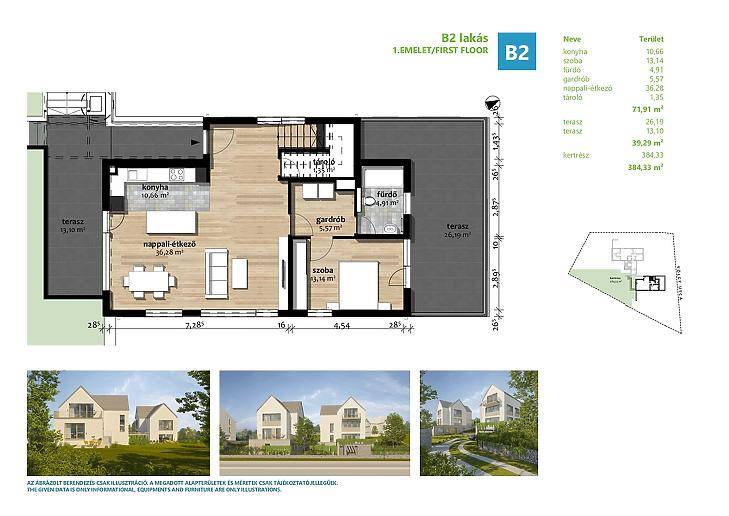 II. kerület zöldövezeti részén 2150nm-es telken legmodernebb technológiával 2025-ben épült fel a 2 épületes társasház. A telken összesen 5 lakás került megépítésre, melyből 4-hez privát kert tartozik. Minden lakás egy teljes szinten helyezkedik el és mindegyik lifttel megközelíthető. A lakáshoz egy teremgarázsbeálló helyet tartalmaz az ár elektromos autótöltővel. Igény esetén további egy beállóhely vásárolható 12M Ft. A lakáshoz tároló is vásárolható 1,2M/nm áron. Az épületen 15cm-es kőzetgyapot szigetelés van, illetve minden lakás hőszivattyús fűtéssel rendelkezik, így biztosítva a legjobb energiahatékonyságot. Az eladásra kínált lakás belső 2 szintes és egyben a legfelső emeleti lakása. A bejárati szinten található egy amerikai konyhás nappali, 1 hálószoba gardróbbal és egy fürdőszoba. A nappaliból nyílik egy 13nm-es napfényes, kertkapcsolatos terasz, a hálószobából pedig egy 26nm-es terasz. Az emeleten található 3 hálószoba, melyből az egyik saját fürdőszobával és gardróbbal rendelkezik. Ezenkívül található még egy fürdőszoba és egy külön wc. A természetközeliséget tovább fokozza a lakáshoz tartozó 384nm-es kizárólagos használatú kert. A lakásból nyílik egy bruttó 65, nettó 25nm-es beépítetlen padlástér, ami leszigetelt, fűtött és minden közmű előkészítéssel rendelkezik. Gépészet: A lakás fűtéséről Mitsubishi levegő-levegő hőszivattyú gondoskodik jelenlét érzékelővel, páratartalom szabályozóval. A lakásban a friss levegőről hővisszanyerős szellőztetőrendszer gondoskodik. A lakás minden gépészetét egy okosvezérlő kezeli (Loxon) a bejáratnál elhelyezett nagyméretű tableten keresztül. Minden beépített anyag elsőosztályú és magas minőséget sugároz. Központi vezérlésű, beépített hangrendszer. Minden beépített anyag elsőosztályú és magas minőséget sugároz. A garázsban napelemrendszer előkészítés található maximum 5kW-os telepíthetőséggel minden lakáshoz.Az 5 lakásból 3 elérhető még, melyből a jelenlegi lakást 2.600.000,-nm áron kínálunk.