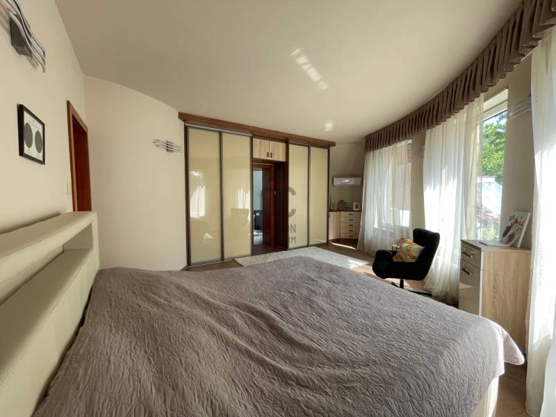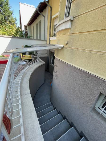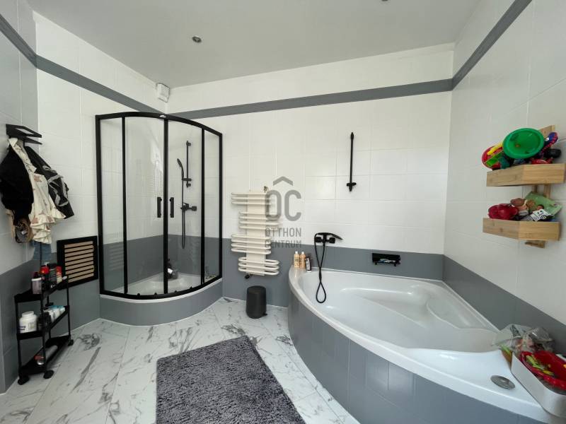 Különleges ajánlat Nagyerdő legkedveltebb részén: Simonyi út mellett elhelyezkedő, bruttó 373 m²-es, önálló családi ház, amelyet a funkciók sokfélesége tesz igazán értékessé. Többgenerációs otthonnak, magánklinikának, irodaháznak vagy cégszékhelynek egyaránt ideális — de aki a Nagyerdő közelségét szereti, családi házként is tökéletes választás. Az elmúlt években a ház korszerűsítése és belső dizájn átalakítása is megtörtént, modern, rendezett, reprezentatív egységet eredményezve.Földszint- Modern nappali–étkező: 35 m²- Gépesített konyha: 8 m²- Gardrób: 5 m²- Előtér, vendég WC- Tágas, részben fedett terasz: 37 m²- Külön bejáratú önálló lakrész: 31 m² (igény szerint könnyen egybenyitható)Tetőtér:- 3 hálószoba: 22 / 19 / 27 m²- 2 fürdőszoba (összesen 17 m²)- Gardrób szoba: 8 m²-2 loggia Szuterén:- Korábban rendelőként használt helyiség: 32 m² (váró, kézmosó, WC kiépítve) - Kazánház + mosókonyha: 11 m²- Tároló: 33 m²- Fürdőszoba: 9 m²- Dupla garázs: 31 m²- Közlekedők, kiszolgáló helyiségek Miért különleges ez az ingatlan?* Rugalmas, többfunkciós alaprajz: külön bejáratú lakrész, rendelő/üzleti helyiség a szuterénben — könnyű átalakíthatóság többféle célra.* Reprezentatív megjelenés: korszerűsítések és belső dizájn frissítései révén akár ügyfélfogadó helyiségnek vagy irodának is alkalmas.* Gyakorlati megoldások: nagy tárolókapacitás, dupla garázs, külön kazánház és mosókonyha.* Nagyerdő közelsége: zöld környezet, séták, sportlehetőségek — vonzó a családoknak és dolgozóknak egyaránt.* Kedvező kombináció: otthon + vállalkozás egy helyen — ideális megoldás például magánrendelő + lakrészként hasznosításra, vagy cégközpont + vezetői lakás egyben.Kinek ajánljuk?Többgenerációs családnak, ahol szükség van külön, mégis kapcsolódó lakóegységre.Orvosi/szakmai rendelőnek, magánklinikának (a korábbi rendelőhelyiség jó alap).Cégnek/irodaháznak, ahol fontos a reprezentatív elhelyezkedés és saját parkolási lehetőség.Olyan vásárlónak, aki szeretné a Nagyerdő nyújtotta életminőséget kombinálni a vállalkozási lehetőségekkel.