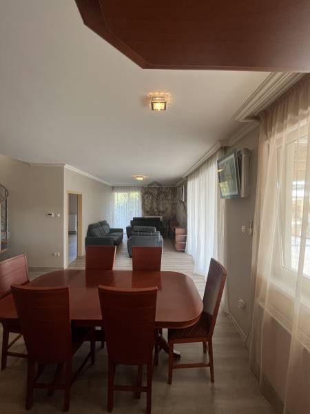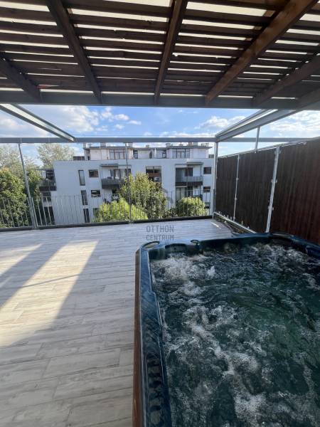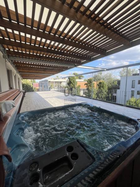 A Budapest 03. kerületében, a Rómaifürdő varázslatos környezetében található ez a kivételes, lakás, amely ideális választás ügyfelek számára, akik egy kényelmes és exkluzív otthont keresnek. Az ingatlan alapterülete 136 négyzetméter, amely négy tágas szobával és két modern fürdőszobával rendelkezik, így ideális választás családoknak vagy akár kisebb közösségeknek is. A világos és tágas nappali a lakás középpontja, amely a konyhaszigetes amerikai konyhával egyesülve tökéletes helyszínt biztosít a családi összejövetelekhez és baráti találkozókhoz. A lakáshoz tartozó 200 négyzetméteres teraszról lenyűgöző panoráma nyílik a folyóra, amely a hétköznapok során nyújt pihentető kilátást. Az ingatlan prémium kivitelezése és modern megoldásai, mint a biztonsági ajtó, videókaputelefon és az automata öntözőrendszer, garantálják a kényelmet és a biztonságot. A lakás hűtéséről klíma gondoskodik, míg a fűtést gáz cirkó rendszer biztosítja, így a lakás egész évben kellemes hőmérsékletet biztosít. A környék ellátottsága kiváló, a közlekedési lehetőségek kitűnőek, hiszen a közelben található busz gyors és kényelmes hozzáférést biztosítanak a város többi pontjához. A csendes, rendezett kerttel és medencés társasházzal rendelkező lakóparkban élvezheti a nyugalmat, miközben a város nyüzsgése is könnyen elérhető. A környék biztonságos, és a portaszolgálat gondoskodik a lakók kényelméről és védelméről. A lakás további előnyei közé tartozik a szauna és a jakuzzi, amelyek a mindennapi stressz levezetésére szolgálnak. Az akadálymentesített kialakítás lehetővé teszi, hogy mindenki számára könnyen hozzáférhető legyen az ingatlan, így akár idősebb családtagok, akár kisgyermekek számára is ideális választás. Ha Ön egy olyan ingatlant keres, amely nemcsak otthon, hanem befektetési lehetőség is, ez a penthouse stílusú lakás tökéletes választás lehet. A felkapott környék és a vízpart közelsége garantálja, hogy az ingatlan értéke folyamatosan növekedni fog. Bármilyen kérdése merülne fel az ingatlannal vagy a bérleti lehetőségekkel kapcsolatban, bizalommal kereshet minket. Szívesen állunk rendelkezésére, hogy segítsünk a megfelelő döntés meghozatalában, és hogy Ön is élvezhesse ezt a csodálatos lakást a Rómaifürdő szívében.