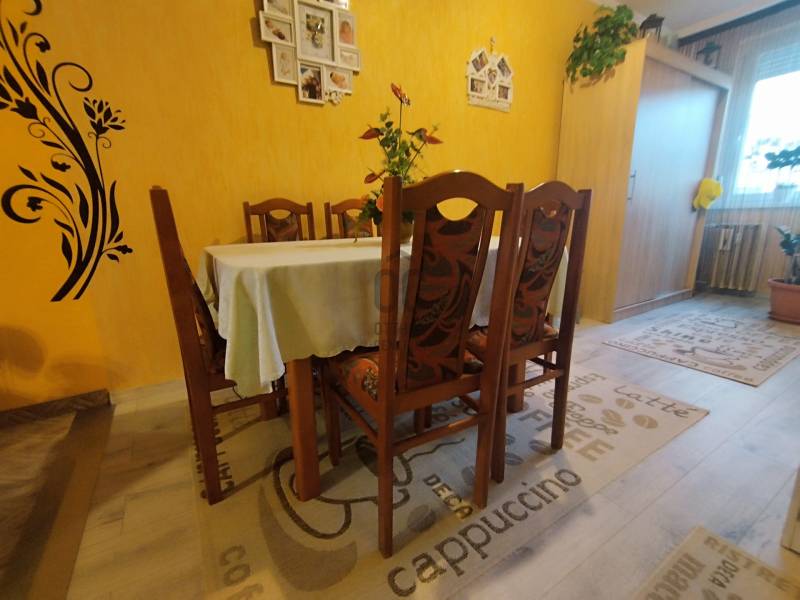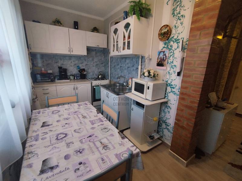 Eladásra kínálok Nagykőrös belvárosához közel, a Bárány utcában, egy felújított lakást.A lakás egy 15 lakásos panel falazatú társas ház 3. emeletén helyezkedik el.A panel falazatú épület, zárt lépcsőházas, parkolás az épület előtt ingyen lehetséges.A lépcsőház zárt, biztonsági kaputelefonos rendszerrel nyitható.Az eladásra kerülő lakás elosztását tekintve kettő szobás, mely 2.5 szobásból lett kialakítva. Jelenleg a nagyobb szoba és a nappali egybe lett nyítva, a kisebb szoba külön nyíló.A FELÚJÍTÁS SORÁN2022-ben új műanyag szerkezetű nyílászárókat helyeztek be, valamint redőnyel szerelték fel azokat, a konyha és az erkély felöli ablak szúnyoghálós.Megtörtént a fürdőszoba valamint a konyha és a közlekedő újra burkolása.A következő évben a teljes villany hálózat áthúzásra került, illetve új konyhaszekrény kapott helyet a konyhában. Víz -és kopásálló laminált padlót tettek le. Az erkélyen a napernyőt újították fel. FONTOSABB PARAMÉTEREK- tágas, kényelmes étkezési lehetőséget biztosító nappali- új, műanyag nyílászárók- a nappali 3.5 kw, nagy teljesítményű klímával felszerelt- a műanyag nyílászárók redőnnyel és szúnyoghálóval felszerelt- a menyezet díszléces megoldású- folyosón beépített szekrény- erkélyen tárolásra szolgáló kamra helyiség- a nappali Déli tájolásúHASZNOS LAKÓTÉR 62 m²- nappali- egy kisebb szoba- konyha- fürdőszoba kádas megoldással- külön wc helyiség- közlekedő - erkélyAMIT A TÁRSAS HÁZRÓL TUDNI KELL- 1970-ben épült- panel falazatú- külön, zárható közös tároló- közös költség:- közös tárolóhelyiség a földszinten- a lépcsőház tiszta, rendezett, kulturált, összetartó a lakóközösség- távfűtéses, egyedi mérőórával felszerelt- a lépcsőház zárt, kapu telefonos rendszerrel nyithatóREZSI KÖLTSÉGEK- közös költség: 8.060.- Ft/hó- vilany: 7.526.- Ft/2 havi- gáz: 4.844.- Ft/negyed év- fűtés + melegvíz: télen: 19.355.- Ft/hó, nyáron: alapdíj: 5.650.- Ft/hó- hidegvíz: 6.833.- Ft/2 havi- szemétdíj: 4.877.- Ft/negyed évA VÉTELÁR RÉSZÉT KÉPEZI- a minőségi konyhabútor és- a gáztűzhelyELHELYEZKEDÉSAz ingatlan elhelyezkedése kiváló, pár perc sétára elérhető minden fontos intézmény!Iskola, óvoda, bölcsőde egy helyen 200 méteren belül, posta, bank, buszmegálló a közelben!Közelben buszmegálló, vasútállomás, iskola, óvoda, Aldi, Tibiker bevásárlási lehetőségek néhány perces sétára elérhetőek.KINEK AJÁNLOM?Azok figyelmébe ajánlom ezt a lakást, akik nem szeretnének bajlódni a lakás felújítással, valamint olyan családoknak, akiknek fontos az óvoda és az iskola közelsége.Neked nem kell a felújítás fáradságaival vesződnöd, nem kell szakemberek ígéreteiben bíznod,csak fogod a bőröndödet és már költözhetsz is, semmi más teendőd nincs!Szeretnél élni ezzel a remek lehetőséggel, akkor hívj minél előbb, ne maradj le róla!Ha jó árarányban szeretne vásárolni, nyugodt környezetben szeretne élni, akkor ez a lakás Önnek való!A hirdetésben szereplő információk a megbízótól kapott adatok alapján készültek, pontosságukért felelősséget nem vállalunk!Felmerülő kérdéseddel, megtekintés szándékával várom hívásodat az ország legismertebb Ingatlanközvetítő hálózat tagjaként!Elérhető vagyok a hét bármelyik napján!Amennyiben a lakás vásárlásához hitelre van szüksége, bankfüggetlen hitelügyintézőnk segít Önnek a legkedvezőbb hitelkonstrukció kiválasztásában, és lebonyolításában!#Nagykőrös #társasházilakás #felújított #panel #újvillany #szoba+nappali #erkélyEz az ingatlan a \"Felező csomag\" megbízási portfólióhoz tartozik. Részletek az Otthon Centrum weboldalán.