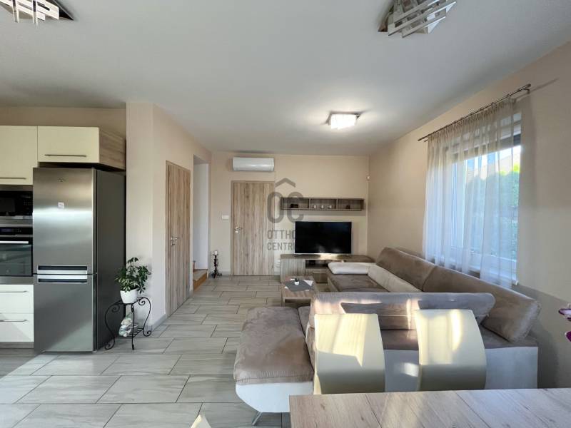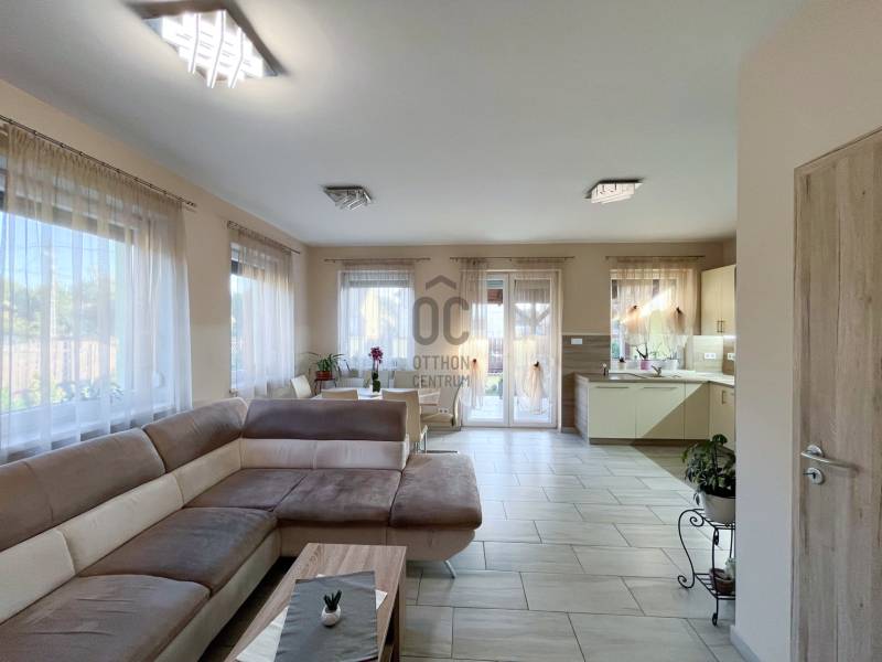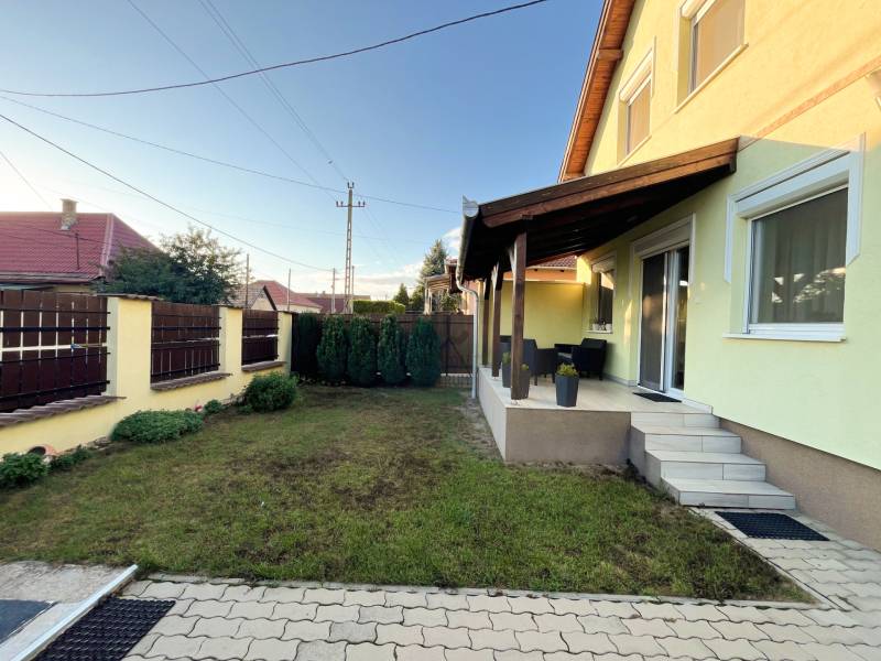 \"DUPLA KOMFORTOS KERTES IKERHÁZ A 18. KERÜLETBEN\"Eladásra kínálunk egy kivételes, ikerházat Budapest 18. kerületének csendes, de jól megközelíthető részén, Újpéteritelepen. Ez az ingatlan ideális választás lehet családosok számára, akik a városi élet nyújtotta kényelmet és a természet közelségét egyaránt keresik. A ház 115 négyzetméteres alapterülettel rendelkezik, amelyben négy tágas szoba található, így bőséges teret biztosít a család minden tagjának. A minimalista kialakítású otthonban a tágas nappali középponti szerepet játszik, ahol a családi együttlétek és baráti összejövetelek könnyedén megrendezhetők. A ház két fürdőszobával rendelkezik, így a reggeli rohanások során sem kell kompromisszumot kötnie a kényelmet illetően. Az amerikai konyha modern és praktikus, tökéletes helyszín a főzéshez és a közös étkezésekhez. Az ingatlanhoz tartozik egy 268 nm-es kert és egy 11,5 négyzetméteres terasz is, ahol élvezheti a friss levegőt és a környező panorámát. A garázsban pedig egy autó kényelmesen elfér, így a parkolás sosem jelenthet gondot. Az ingatlan állapota jó, a fűtés kondenzációs gázkazán rendszerrel megoldott, a nyári hónapokban pedig a klíma biztosítja a kellemes hőmérsékletet. A ház tehermentes, így azonnal birtokba vehető, ami nagy előny a vásárlók számára. A riasztórendszer pedig a biztonságérzetet növeli, így Ön és családja nyugodtan élvezheti új otthonát. Bővebben az ingatlanról:- építés éve: 2016- 15 cm-es homlokzati szigetelés- 3 rétegű műanyag hang- és hőszigetelt nyílászárók (redőnnyel, szúnyoghálóval)- több zónás riasztórendszer- nagy, tágas terek jellemzik- fűtéséről kondenzációs kazán gondoskodik- hűtésére két klíma lett beszerelve (inverteres)- zuhanyzós és kádas fürdőszoba- 15 nm-es garázs, ami közvetlen a házból megközelíthető- 4 nm-es tároló, ami a garázsból megközelíthető- 11,5 nm-es fedett terasz- alacsony rezsiköltségA környék adottságai is figyelemre méltóak. Az ingatlan könnyen megközelíthető autóval, és a közeli tömegközlekedési lehetőségek, mint például buszjáratok, gyors hozzáférést biztosítanak Budapest belvárosához. A csendes utcák és a barátságos szomszédság ideális környezetet teremt a családi élethez. A közelben található parkok és zöld területek remek lehetőséget kínálnak a szabadidő eltöltésére, míg a közeli boltok és szolgáltatások mindennapi kényelmét biztosítják. Bízom benne, hogy ez az ingatlan felkeltette érdeklődését, és szívesen válaszolok bármilyen kérdésére, amely a vásárlással vagy a környékkel kapcsolatban merülne fel. Kérem, ne habozzon kapcsolatba lépni velem, hogy közösen megtalálhassuk az Ön új otthonát!Hívjon a hét bármely napján!