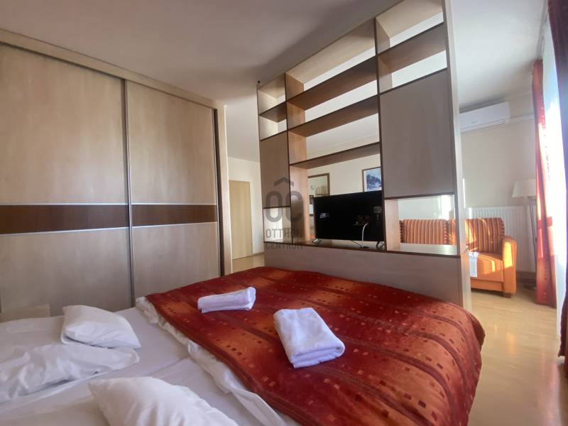 Budapest XIII. kerületében, az Országbíró utcában felújított apartmanházban hosszú távra (minimum 1 év) kiadóak modern, igényesen berendezett, gépesített, teljes felszereltségű lakások (38,7 m², 44,3 m², 32,6 m²) melyek erkélyéről parkos, zöld környezetre nyílik kilátás. A lakások nappali + hálófülke elrendezésűek.Beköltözés azonnal lehetségesBérlők száma: maximum 2 főKaució: 2 x 750 EUR/apartmanBérleti díj: 600 EUR/hó/apartmanRezsi: 150 EUR/hó/apartman, amely tartalmazza a hűtést-fűtést, áramot, vizet, internetet, kábel TV-t, heti egyszeri takarítást és a 24 órás recepció szolgáltatásátHáziállat: kis méretű, jól nevelt kutya vagy cica hozhatóAz ingatlan kiváló elhelyezkedésű, könnyen megközelíthető tömegközlekedéssel, a közelben számos bevásárlási lehetőséggel. Az épületben kávézó, étterem és üzletek is találhatók.Hívj bizalommal, ha megtekintenéd!