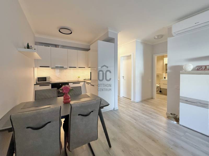 A magas minőségben kivitelezett, 0-24 Portaszolgálattal és gondozott belső kerttel rendelkező, 2008-ban átadott III.ütem félemeletén, 64 m² alapterületű + 8 m² terasszal rendelkező háromszobás otthon eladó. A lakás teljeskörű felújítása 2025 tavaszán megtörtént, immár kulcsrakész állapotban van. HELYISÉGLISTA:nappali-konyha 24 m²hálószoba 12.7 m²hálószoba 12.5 m²fürdőszoba-wc 5.4 m²wc-kézmosó 2.2 m²előszoba 2.3 m²közlekedő 1,63 m²terasz 8 m²XIII. MARINA PARTA Marina Part nem csupán egy modern lakóépületekből álló városnegyed, hanem egy oázis a belvárostól forgatagától csupán 10 percnyi autóútra. A fővárosi lakáskeresők elsőszámú kerületében, a XIII. kerület Duna-parti szakaszán található, ahol egyedülálló, exkluzív környezet tárul elénk, mely minden generáció számára ideális otthont biztosít. A Duna-parton fekvő terület lakóépületeket, éttermeket és kávézókat, tágas parkokat, exkluzív sétányt, pezsgő kikötőt és sportolási lehetőségeket ölel fel, lenyűgöző panorámát nyújtva a Dunára és a Budai-hegyekre.Amennyiben megtekintené az ingatlant, vagy további információra van szüksége, várom hívását, a lakás rugalmasan megtekinthető a hét bármely napján.