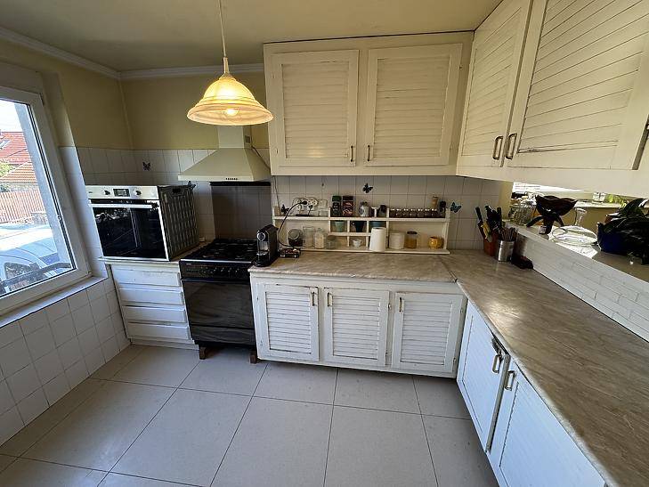BUDAKALÁSZON, SZENTISTVÁN-TELEPEN ELADÓ EGY KIVÁLÓ ELHELYEZKEDÉSŰ SZÉLSŐ SORHÁZ!KÖRNYÉK:Budakalász legkedveltebb részén, Szentistván-telepen helyezkedik el, csupán 12 percre (1 km-re) a Budakalász, Szentistvántelepi H5-ös HÉV megállójától. A Szentistvántelepi Óvoda, 9 perc, 700 méter, míg a Szentistvántelepi Általános Iskola csak 5 perces, 400 méteres sétára található. Ezen felül a környéken rengeteg üzlet, szolgáltatás áll rendelkezésre, mint például a Kalász Pékség, Coop ABC, mindössze 10 perc sétára, az Auchan csupán 10 percre autóval, vagy akár, pár perces sétára a Posta.A HÁZ JELLEMZŐI:-Telek mérete: 430 nm-A ház hasznos alapterülete 120 nm.-Plusz egy 15,4 nm-es télikert.-Plusz 15 nm terasz.-Plusz egy 6 nm-es erkély.-Plusz egy 50 nm-es pince-garázs.-A ház 1989-ben épült, B30-as téglából.-6 cm-es Dryvit szigetelést kapott, plusz 2 cm-es perlites vakolatot.-A födém beton.-A tetőben 12 cm-es üveggyapot szigetelés található, Bramac betoncserép fedéssel.-Dupla rétegű thermo üveges műanyag nyílászárók, minden ablak redőnnyel és szúnyoghálóval felszerelve.-A fűtést és a melegvizet egy, turbós kombi gázkazán biztosítja.-A földszinten padlófűtés, az emeleten radiátorok gondoskodnak a fűtésről.FINANSZÍROZÁS:-Tehermentes, banki finanszírozással is megvásárolható, melyben irodánk ingyenes tanácsadással áll rendelkezésükre! VEVŐINK RÉSZÉRE A KÖZVETÍTÉS DÍJTALAN! A hirdetésben szereplő adatok tájékoztató jellegűek!